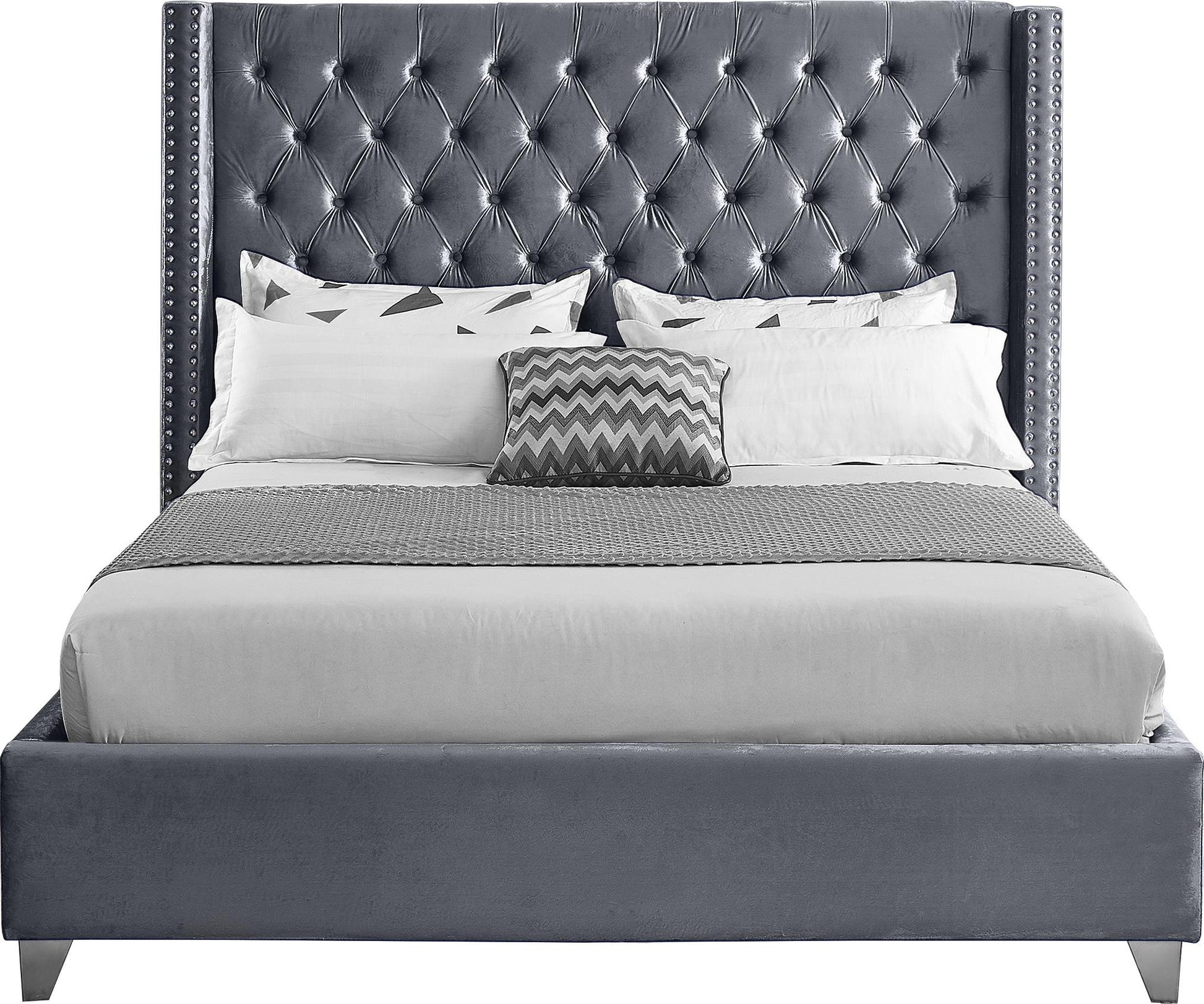 Aiden Grey Velvet King Bed