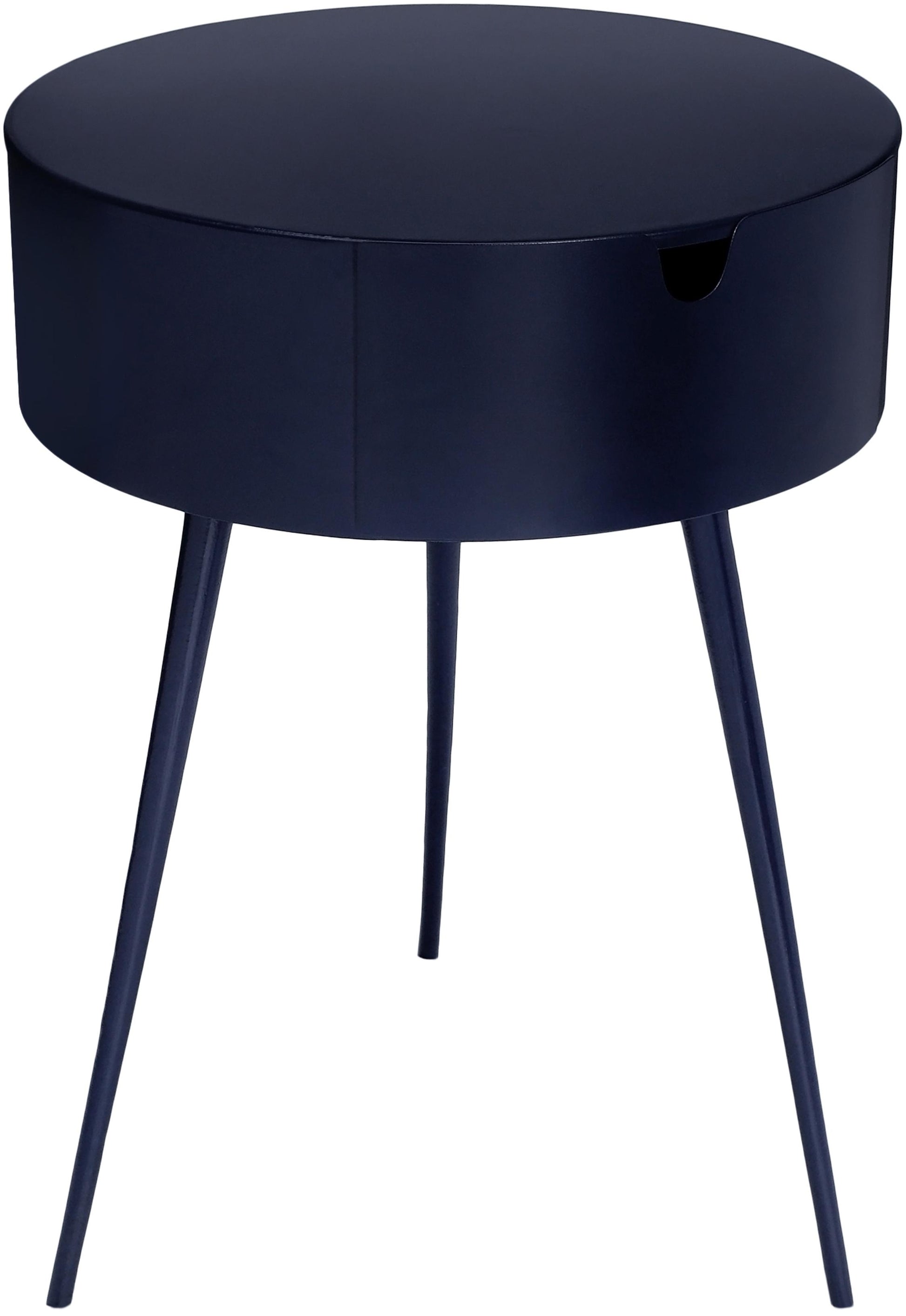 Bring minimalist style and unmatched sophistication to your room with this Bali side table and nightstand. Useful as a table in the living room or as a spot for holding essentials bedside, this Bali table is a versatile addition to your home. Its made from metal with a navy finish that blends in seamlessly with other elements in your room. A single drawer opens to reveal a roomy area to keep everything corralled out of sight.