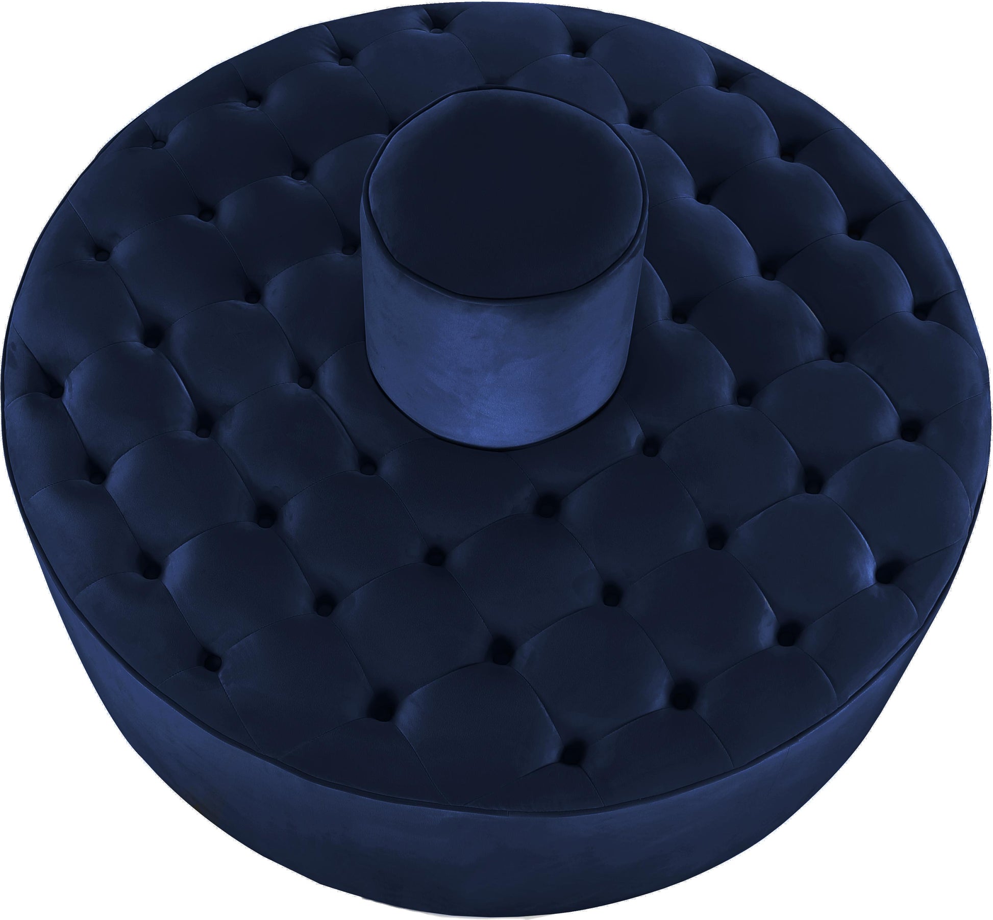 Infuse your space with modern style when you bring home this Banquet Navy Velvet Roundabout ottoman/bench combo from Meridian Furniture. This elegant accent provides the perfect spot for propping your feet up after a long day at the office, or put it to work as impromptu seating when you have company over. The chic and contemporary upholstery, and deep tufting on the top gives this piece a sumptuous feel while keeping the ottoman's cushion aloft for a luxe look.