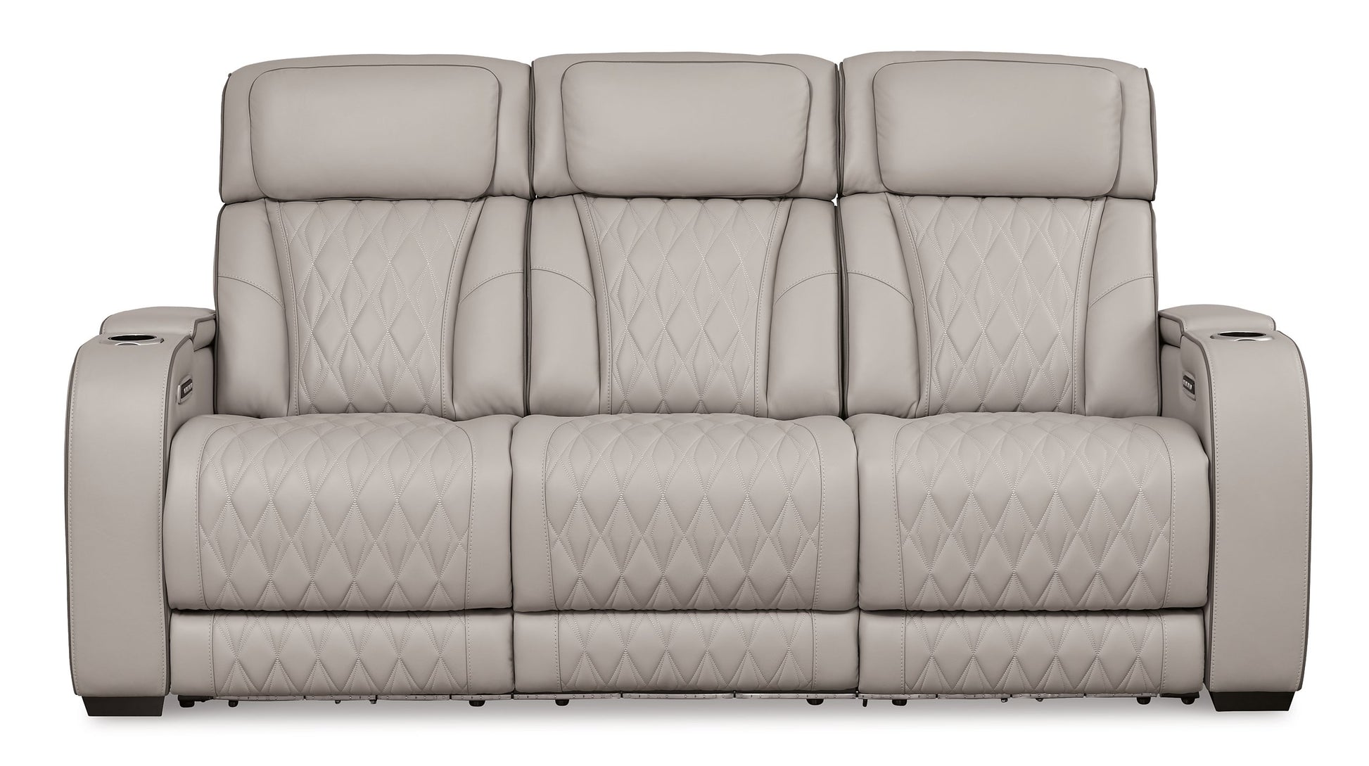 Ready to take your reclining experience to the next level? Then sit up and take notice. With this power reclining sofa, ultimate relaxation is at your fingertips. Experience the pure bliss of an air massage system and heated seats at the touch of a button. The center seat is crafted with a drop-down table with wireless charging and dual cup holders. Plus the luxurious diamond-stitched upholstery is easy on the eyes, adding elegance to any space.More About This Product