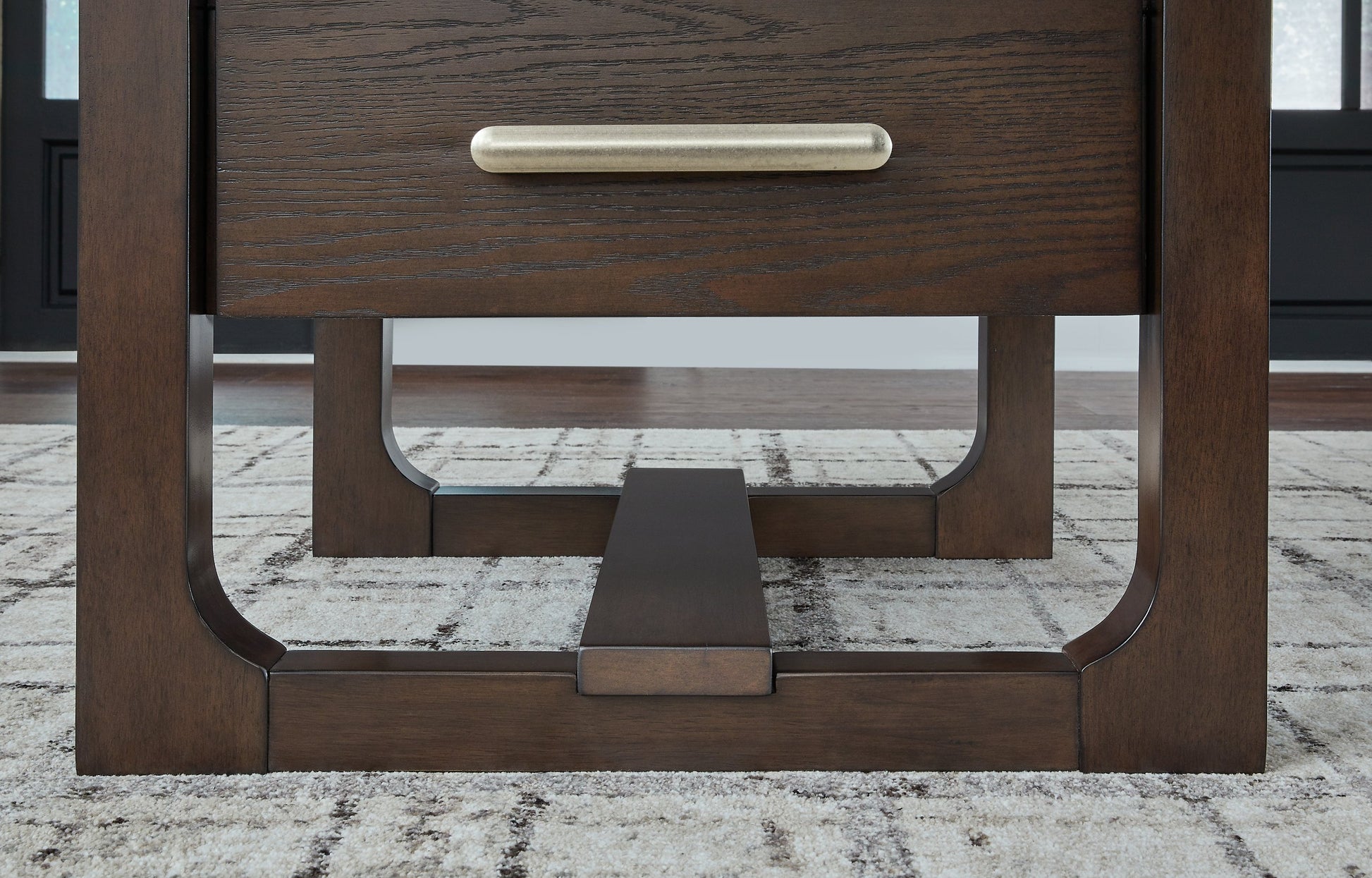 If casual contemporary style is your thing, then you'll love this end table. A wood-tone finish with a rich, dark grain contrast lends a soothing sensibility, while the unique open shelf design and spacious storage drawer add function to great form. Sleek and stylish, this piece is a fresh take on cool for the modern home.More About This Product