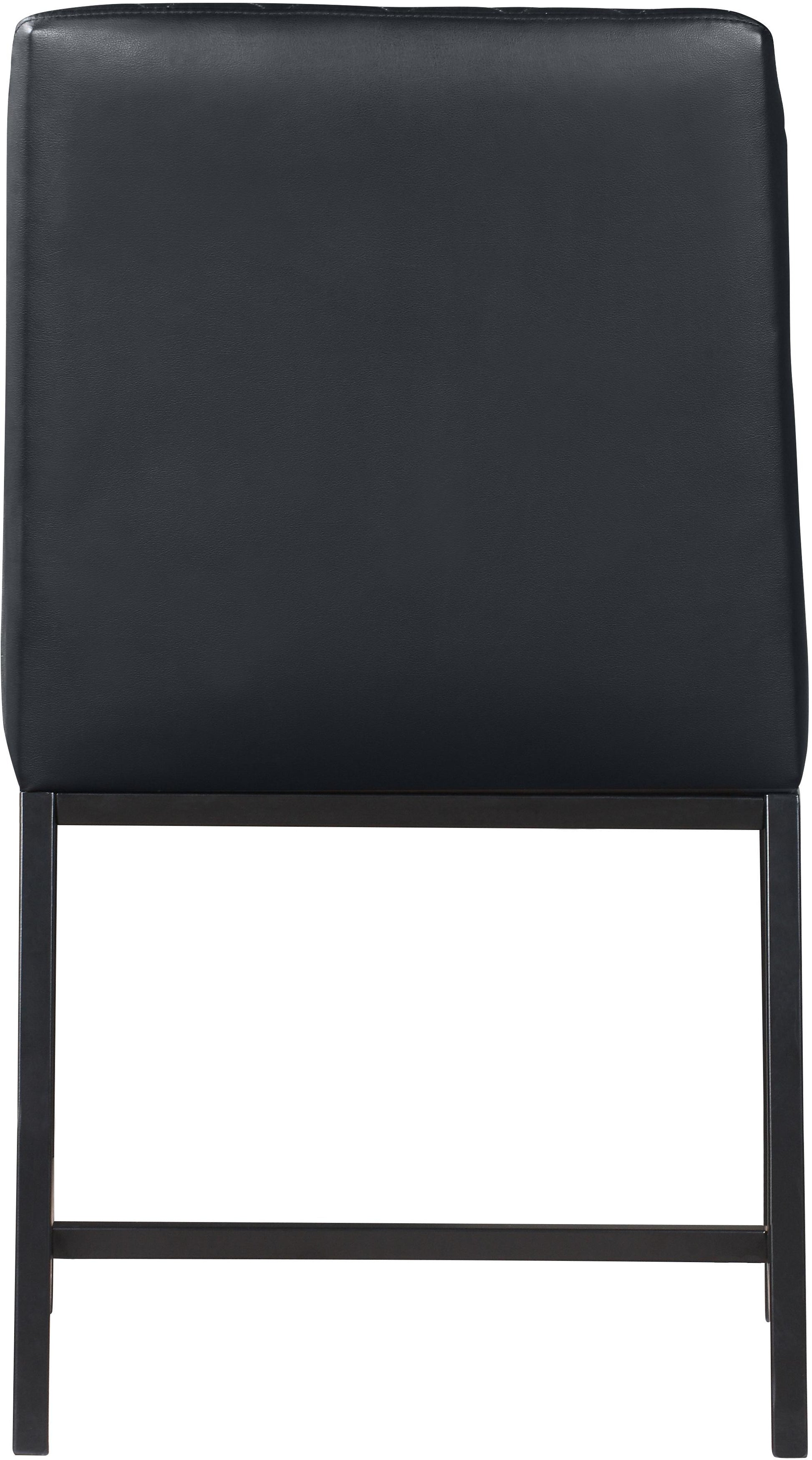 Give your dining room a revamp with this Bryce Faux Leather Dining Chair from Meridian Furniture. This handsome chair features an armless design with heavily padded seat and back cushions, ensuring that guests stay comfortable all the way through dessert. The back is quilted for added aesthetic appeal, and it's upholstered in black faux leather for the luxury look of leather without the maintenance requirements. A metal frame and matte black metal legs complete the look and provide sturdy support.