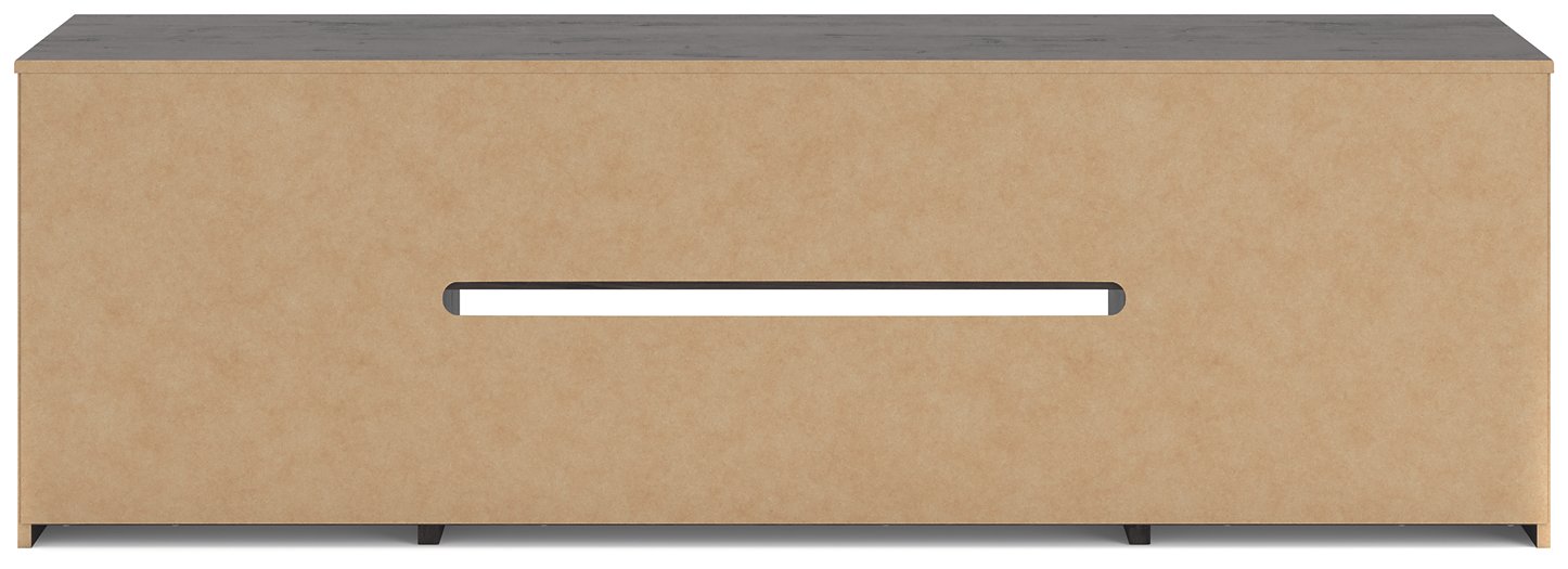 This TV stand with electric fireplace embraces a classically charming aesthetic and repurposes it for modern living. Its dark charcoal finish appeals to your love of vintage character, while a chic chevron pattern is effortlessly on trend. Media accessories stay tucked away in style thanks to hidden storage behind the doors. And for added ambiance, the electric fireplace brings a cozy-cool vibe to your living room. With the touch of a button, activate the LED-lit flame and adjust the temperature or the flame brightness. The flame effect includes multiple color options and a realistic-looking faux birch log set.More About This Product