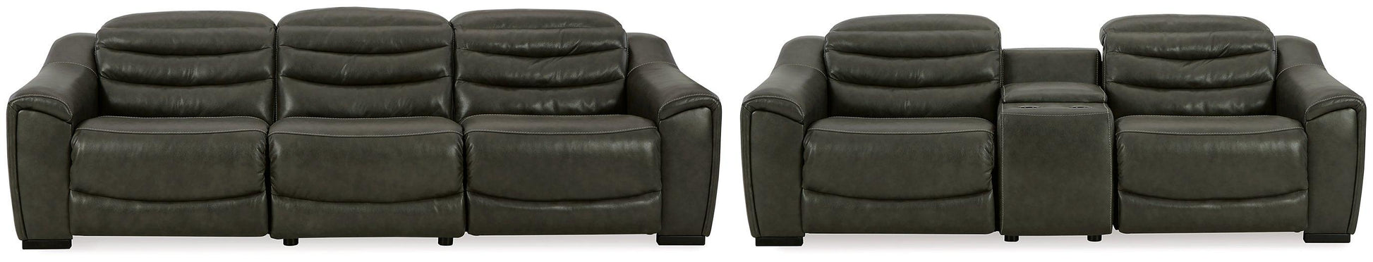 For those seeking to curate a living room retreat that offers superior comfort and a contemporary aesthetic, the sleekly designed Center Line power reclining seating package will become your favorite source of at-home serenity. Rest on combination leather/faux leather upholstery, and use the one-touch power controls to recline and adjust the headrests with ease. As you recharge after a long day, your devices can too with USB charging. This set is visually enticing in a luxe dark gray, with slope track arms and stitched detailing on the back to enhance its modern appeal.More About This Product