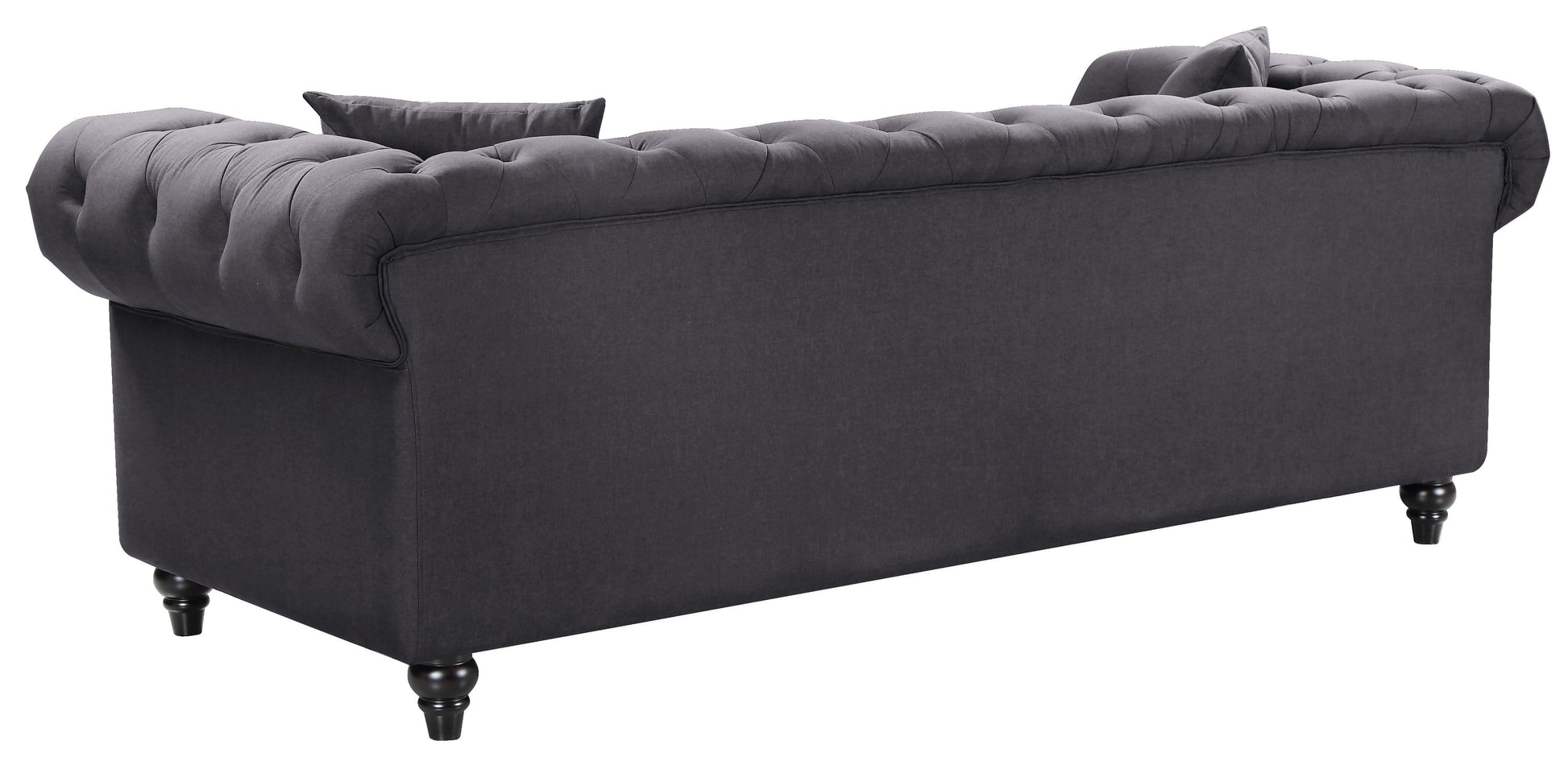 Elegant and eye-catching, the stunning Chesterfield Living Room from Meridian Furniture is the perfect addition to any space. Rich Linen covers the plush, comfortable seat, padded with high-density foam and modern tufted design. Strength and beauty is guaranteed with a solid wood frame and legs. Features a nail head design on the arms and includes matching throw pillows.