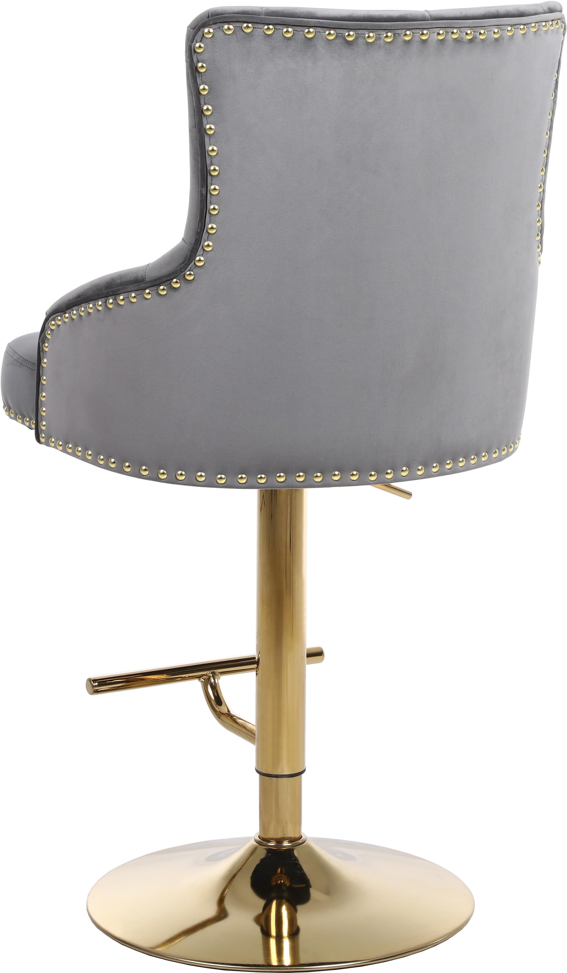 Make this Claude Grey Velvet Adjustable Stool everyone's new favorite seat. The high-back design supports guests in comfort, while rich velvet upholstery in a crisp grey color gives the stool a svelte, modern look. Chrome nailhead trim adds another level of luxury, and the tufted design enables the cushioned back to keep its loft for maximum comfort. Add it to the bar or the kitchen counter to create a modish vibe in your room.