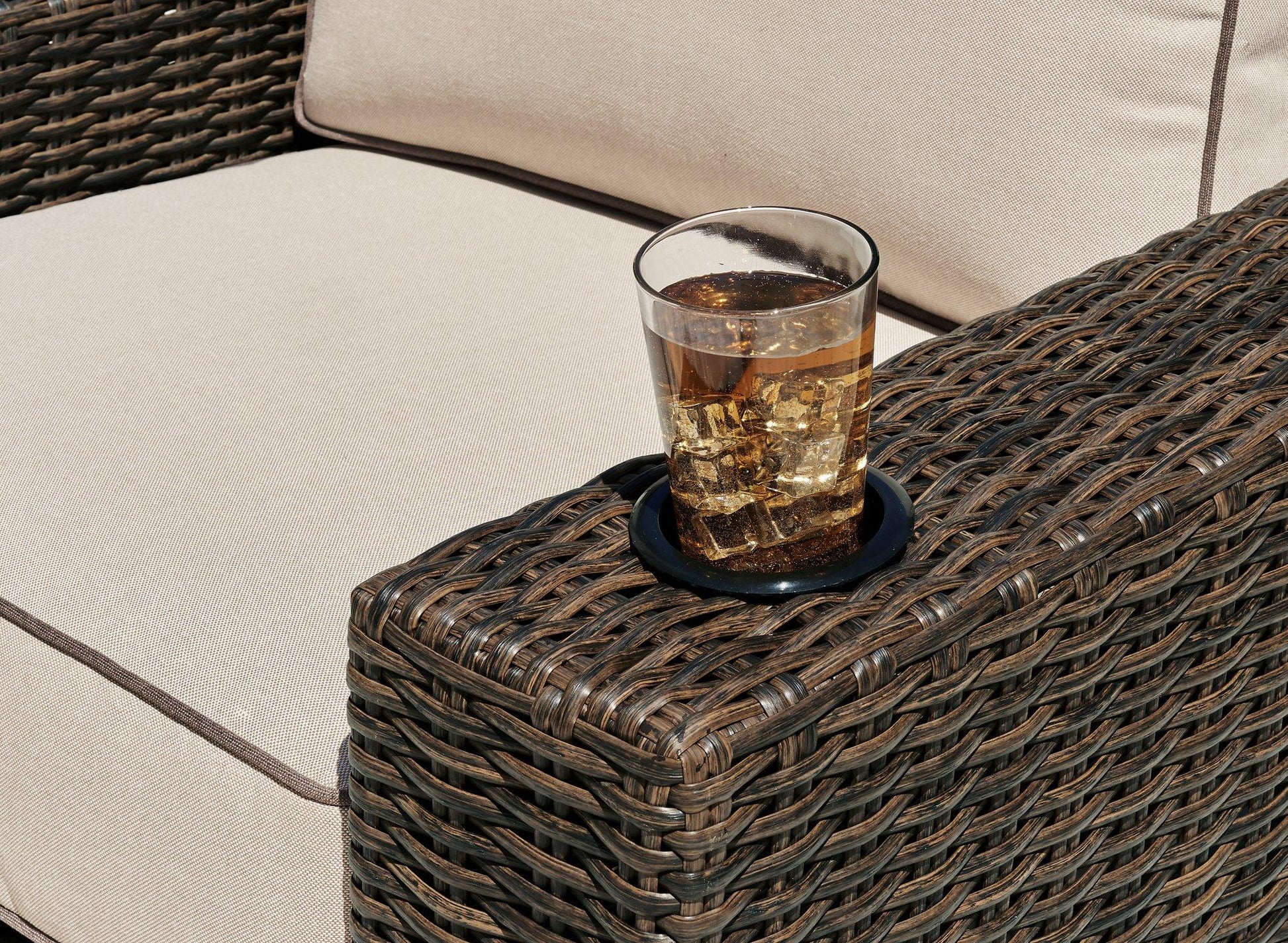 Who says the great outdoors isn’t made for luxury living? This swivel lounge chair offers all the high-end design, plush cushioned comfort and durability you could ask for, and then some. Its all-weather, rust-proof aluminum frame provides the easy-breezy wicker look you love without the high maintenance. Lounge about and swivel all around to take in the view. Built-in cup holder makes it that much easier to chillax. Rest assured, the high-performing Nuvella® fabric is made to stand up to the elements.More About This Product