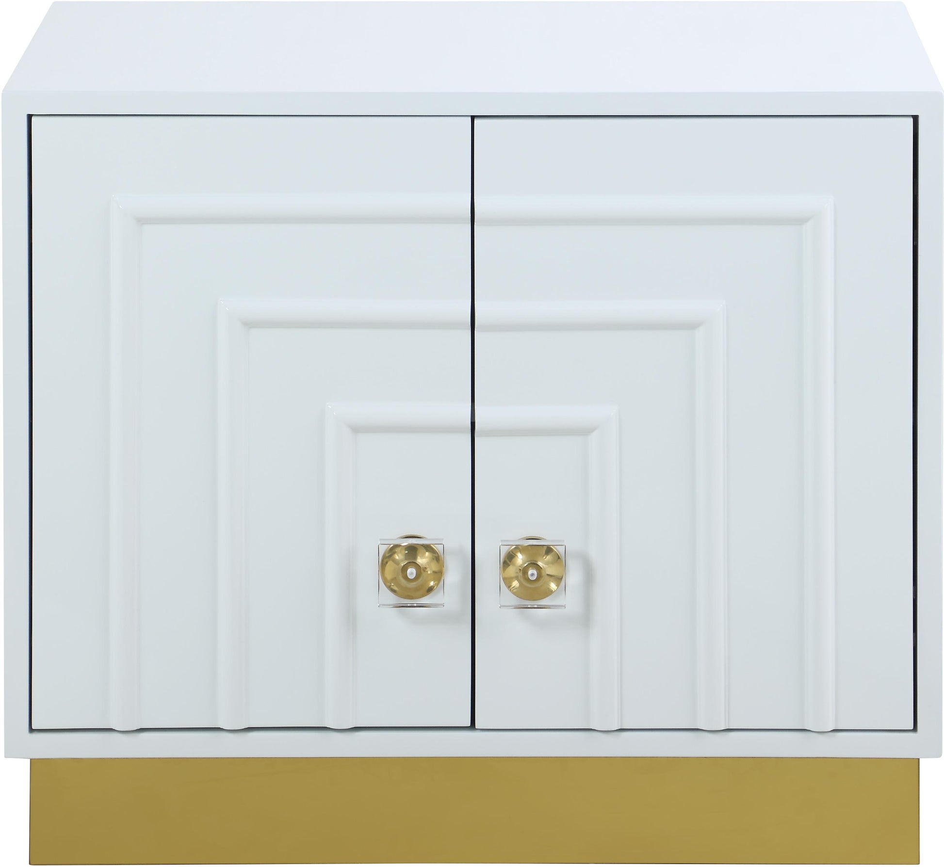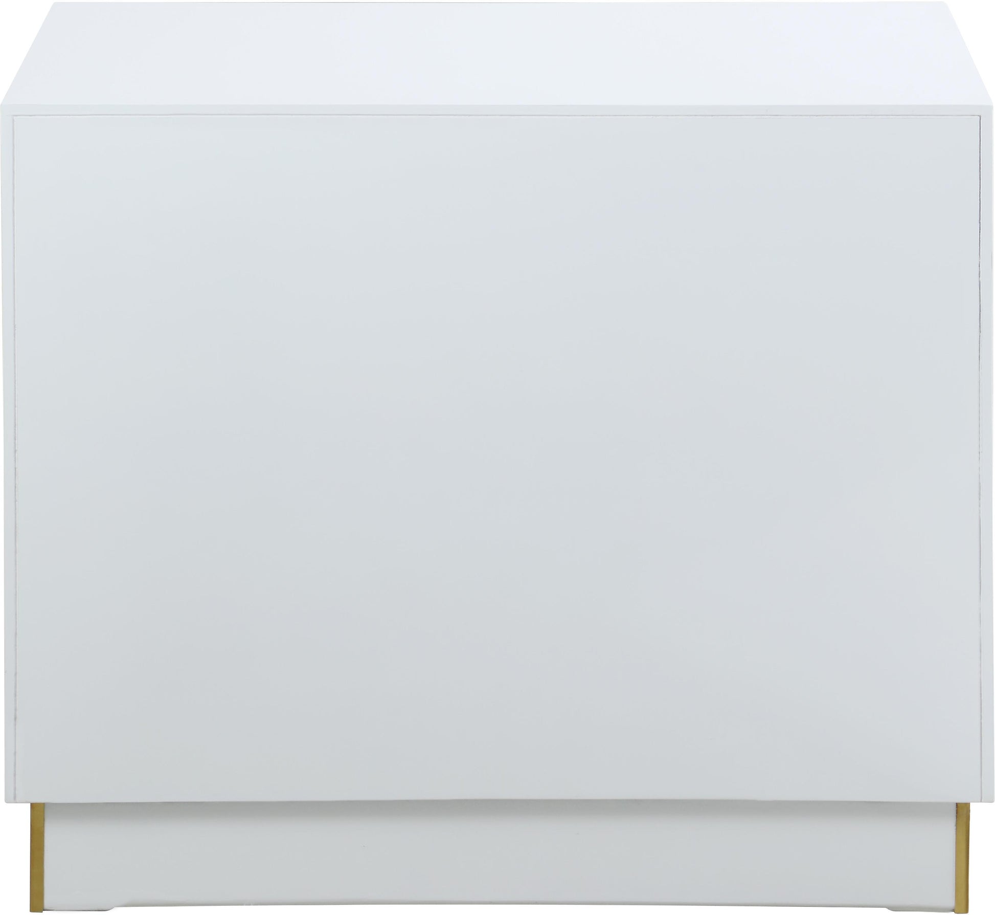 House everything you need in your room out of sight with the help of this Cosmopolitan side table, a perfect addition to a bedroom or living room space. This elegant and eye-grabbing unit features a stunning white lacquer finish along with a gold stainless steel base and acrylic and gold handles. The overall result is a table that���s both chic and sophisticated���and that meshes well with other contemporary accents in your room.