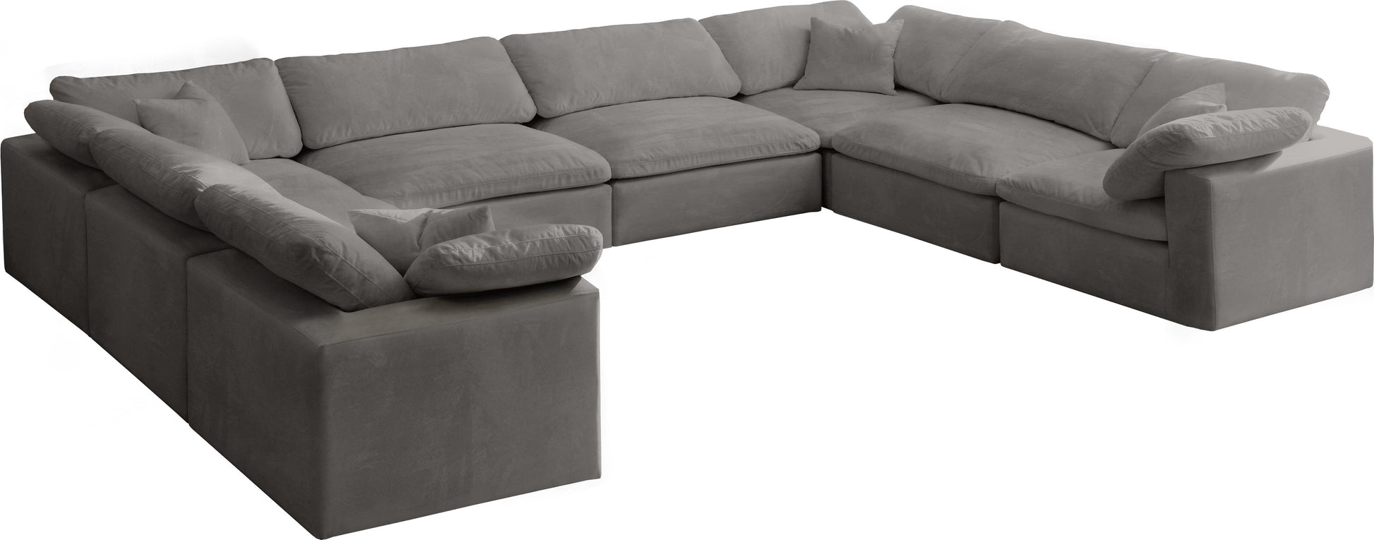 Bring home this Cozy 4-piece sectional for a fresh new look. Embrace casual elegance with this Cozy velvet cloud modular down-filled seating option. Handsome from all angles, this piece features soft grey velvet upholstery to make it an easy fit in any room. This modular piece can be combined with other items in the Cozy collection to create a seating group of your dreams. The cushions on this piece are exceptionally comfortable���and filled with down for luxury that you deserve as you rest and relax.