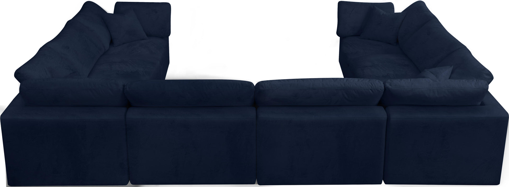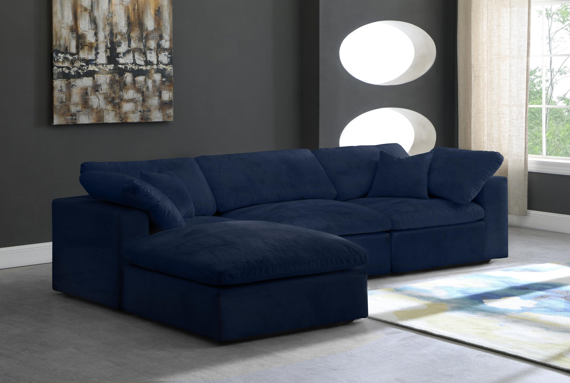 Bring home this Cozy 4-piece sectional for a fresh new look. Embrace casual elegance with this Cozy velvet cloud modular down-filled seating option. Handsome from all angles, this piece features soft navy velvet upholstery to make it an easy fit in any room. This modular piece can be combined with other items in the Cozy collection to create a seating group of your dreams. The cushions on this piece are exceptionally comfortable���and filled with down for luxury that you deserve as you rest and relax.