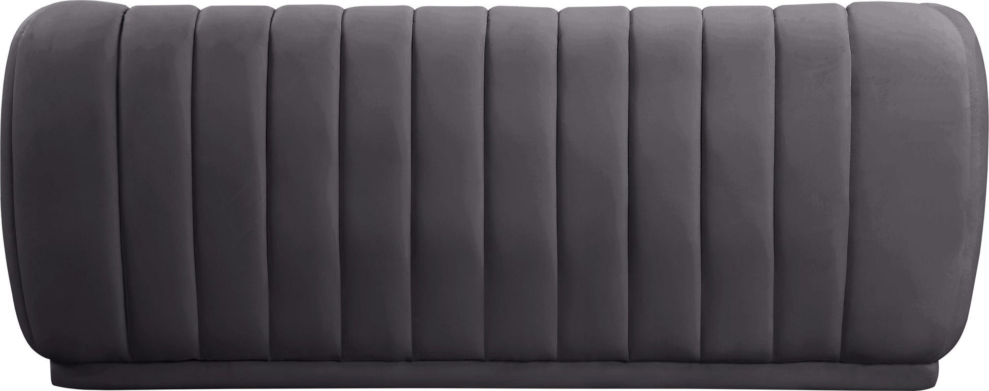 Casual meets elegant in the design of this Dixie velvet sofa. Relax, unwind, and take a load off whileyou'rere kicked back in this handsome seating option. Deep channel tufting adds an upscale touch to the unit���s soft grey velvet upholstery while giving it a dimensional look. Pair this piece with other items in the Dixie collection for a complete and seamless look in the living room or den.