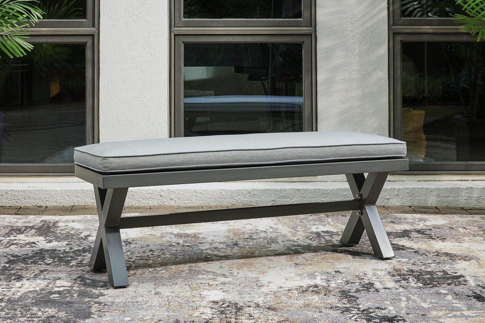Add a distinguished touch of gray to your outdoor living space with this bench. It's made with an aluminum frame with a wood-look finish for a relaxed feel that provides seasons of enjoyment. Rest assured, the thick seat cushion is wrapped in Nuvella® high-performance fabric that’s fade-resistant, stain-resistant and a breeze to clean.More About This Product