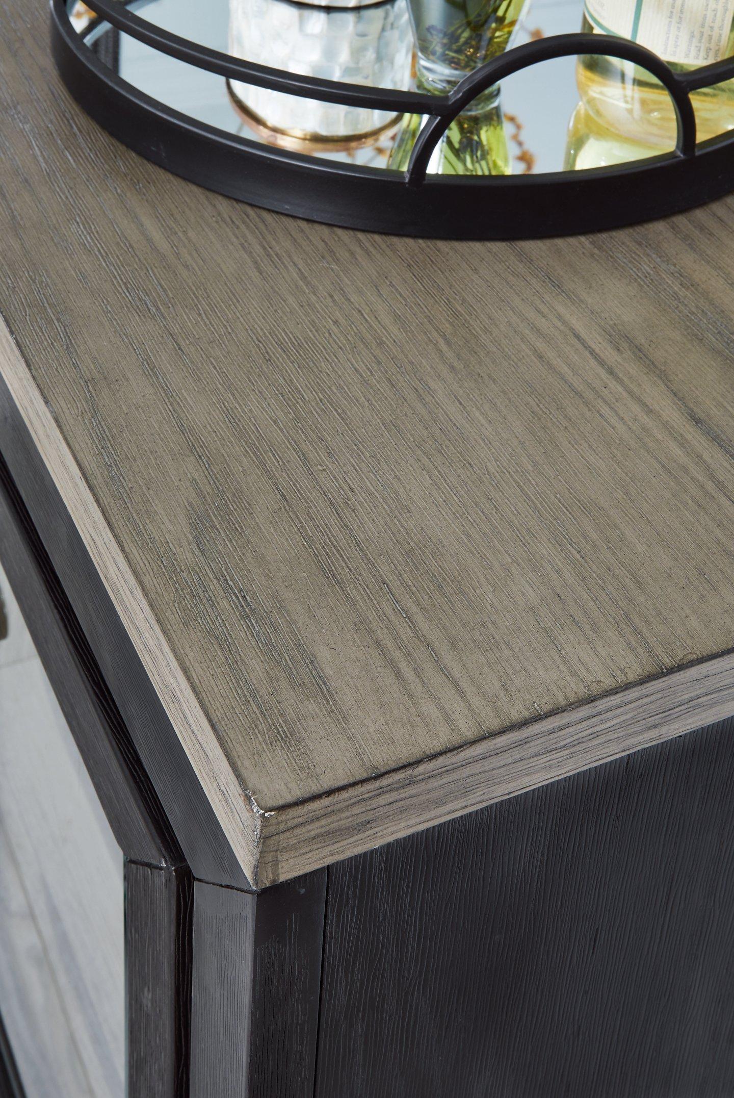This dresser and mirror set is casual contemporary style simply done right. Its two-tone color scheme features a rich brushed black main color accented with a beautiful dusty grayish brown wood tone. With 11 soft-close drawers (three located neatly behind each door) the dresser offers plenty of storage to accommodate your wardrobe needs with ease.More About This Product
