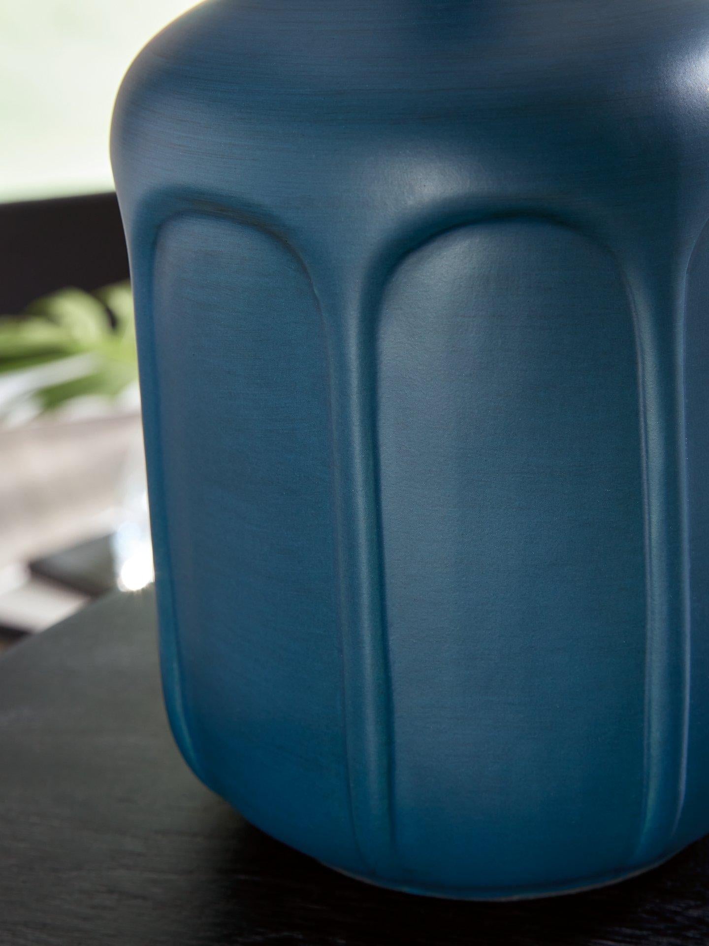 - Antiqued blue glazed finish