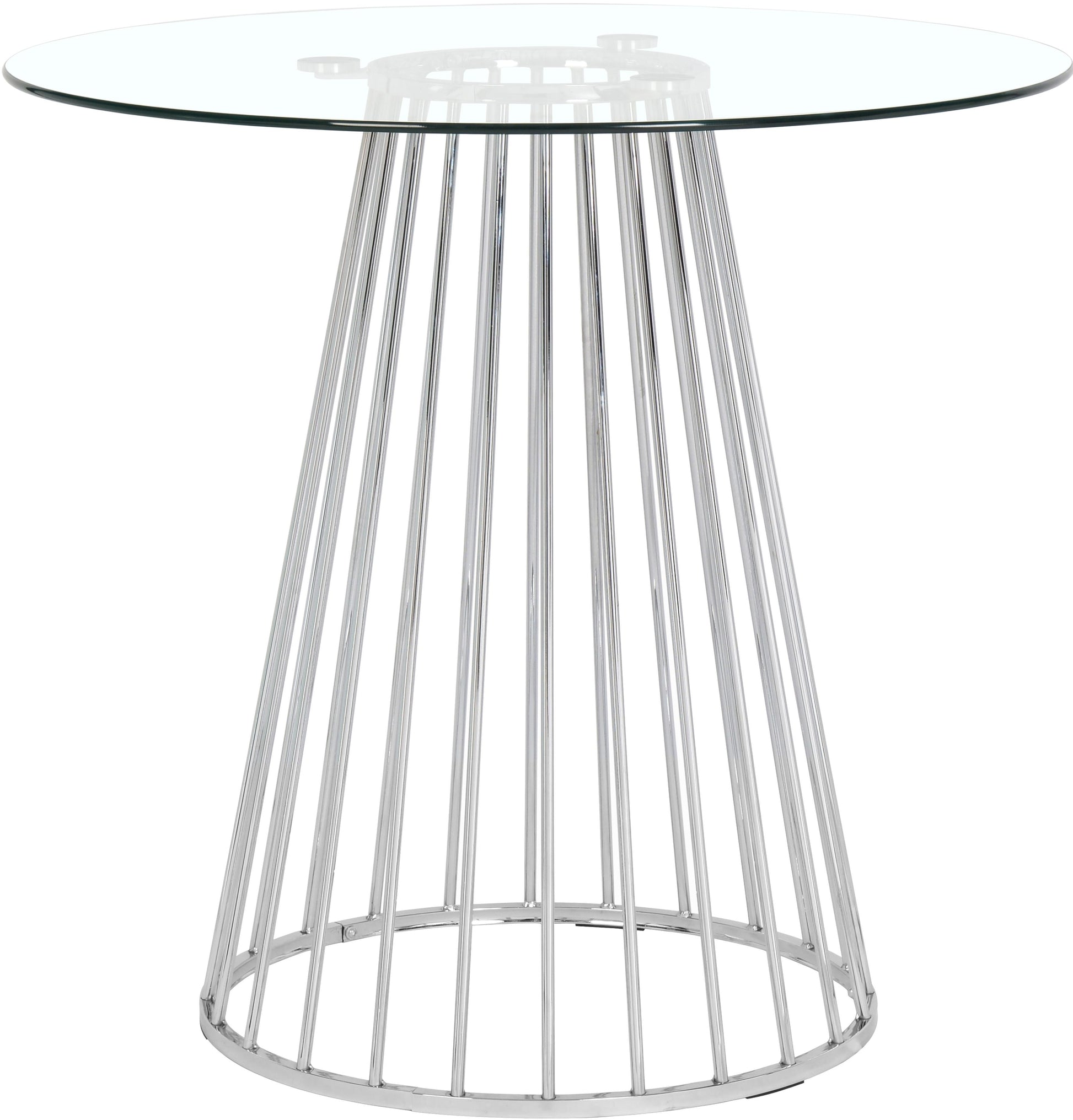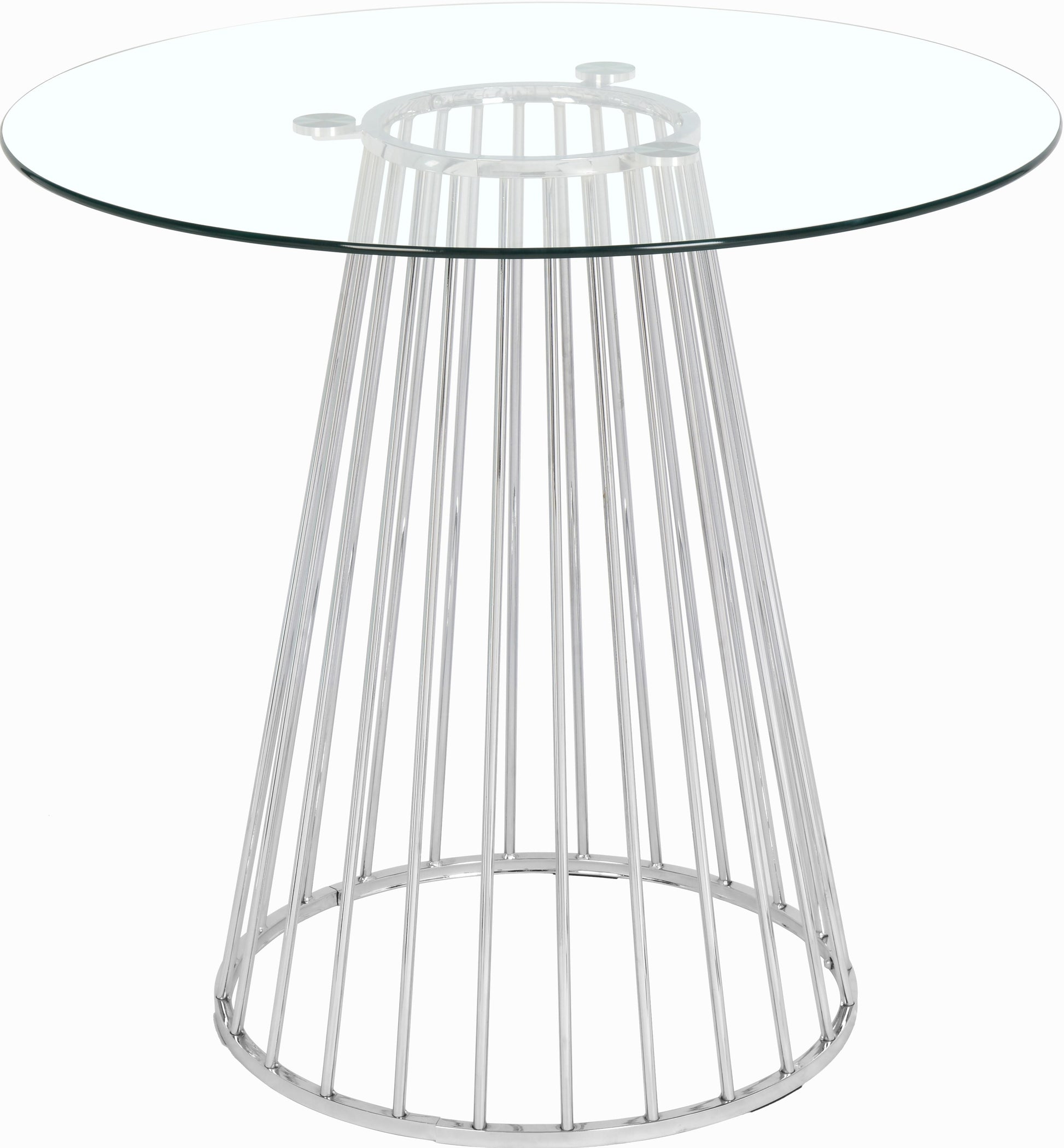 Add a bold touch to your dining area with this chic Gio counter height table. Featuring a round, clear tempered glass tabletop and a polished chrome metal base with a wired contemporary design, this dining table transforms your dining space into a stylish haven. At 40 inches round and 37 inches high, this stunning table offers ample space for you to gather around and enjoy a family meal, while adding drama to your existing modern decor.