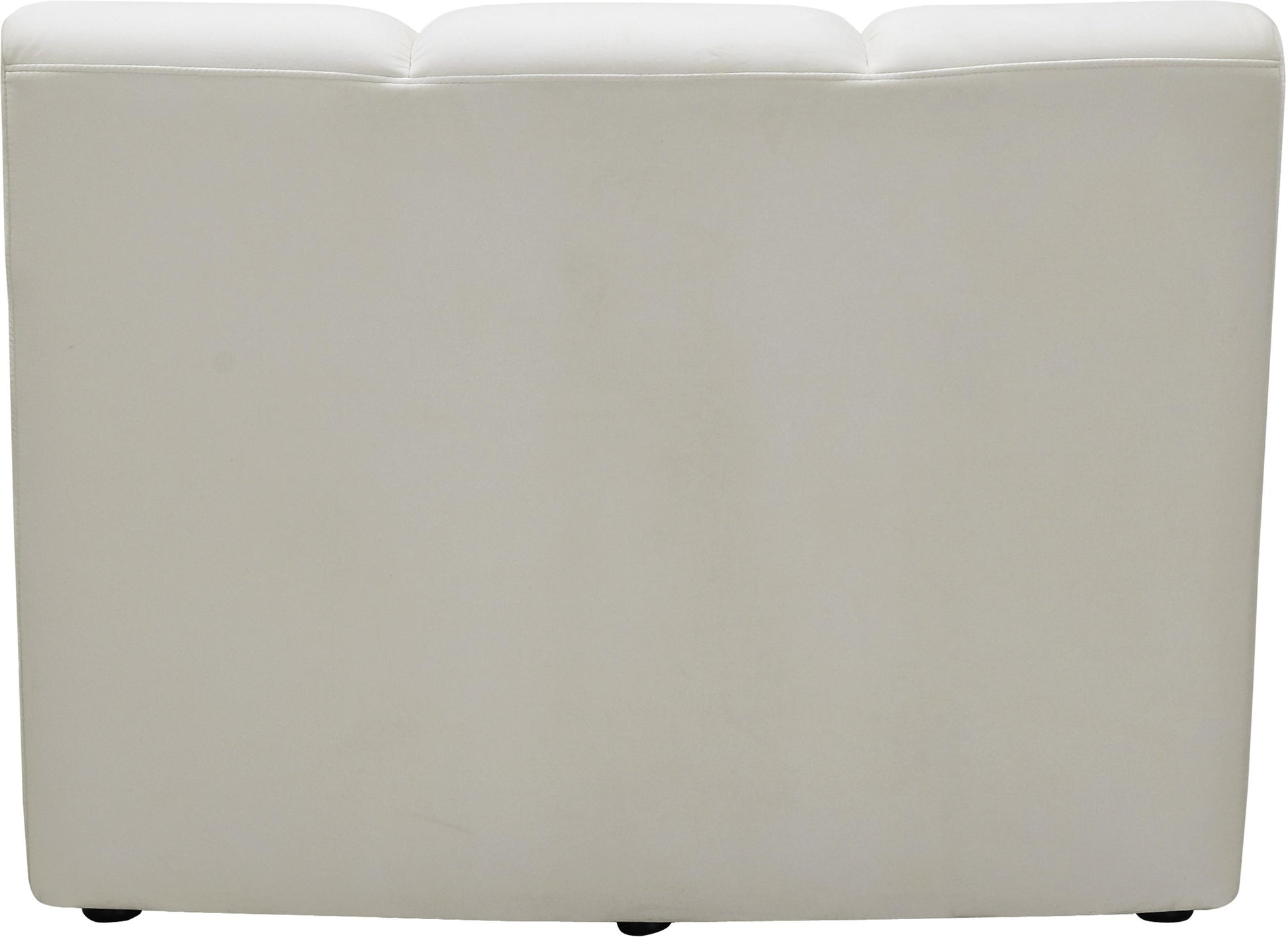 Create a seating group that works for every possible situation with this Infinity modular chair and other pieces in the Infinity collection. Upholstered in soft cream velvet material that feels great against the skin and offers long-wearing beauty, this piece fits with other Infinity items for an infinite number of combinations that get your seating requirements just right but that look just as nice when used on their own.