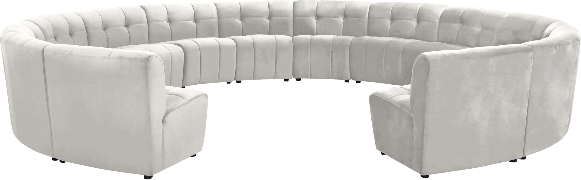 Invest in your home's comfort with this Limitless 14 Piece Sectional. This modular unit offers tons of flexibility in the number of ways that you can put each piece in the Limitless collection together to get the ideal customized look. Upholstered in cream velvet, this beautiful piece is soft and cool to the touch, so you can feel comfortable from every angle. Button and channel tufting add to this unit���s upscale look and contemporary charm.