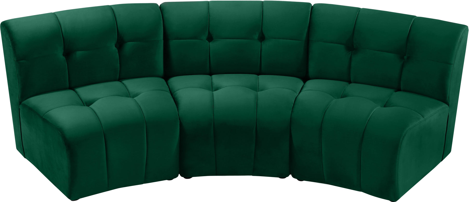 Invest in your home's comfort with this Limitless sofa. This modular unit offers tons of flexibility in the number of ways that you can put each piece in the Limitless collection together to get the ideal customized look. Upholstered in green velvet, this beautiful piece is soft and cool to the touch, so you can feel comfortable from every angle. Button and channel tufting add to this unit���s upscale look and contemporary charm.