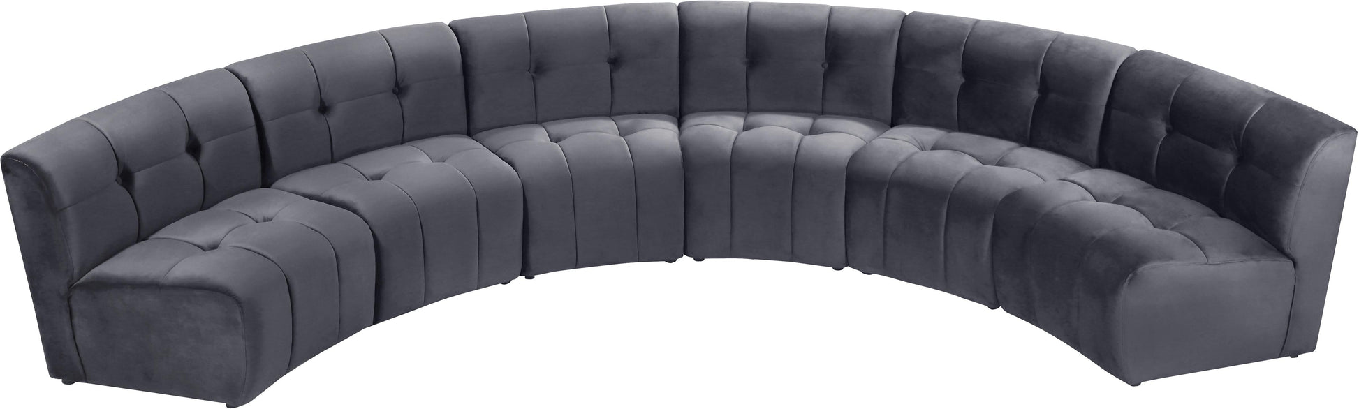 Invest in your home's comfort with this Limitless 6 Piece Sectional. This modular unit offers tons of flexibility in the number of ways that you can put each piece in the Limitless collection together to get the ideal customized look. Upholstered in grey velvet, this beautiful piece is soft and cool to the touch, so you can feel comfortable from every angle. Button and channel tufting add to this unit���s upscale look and contemporary charm.