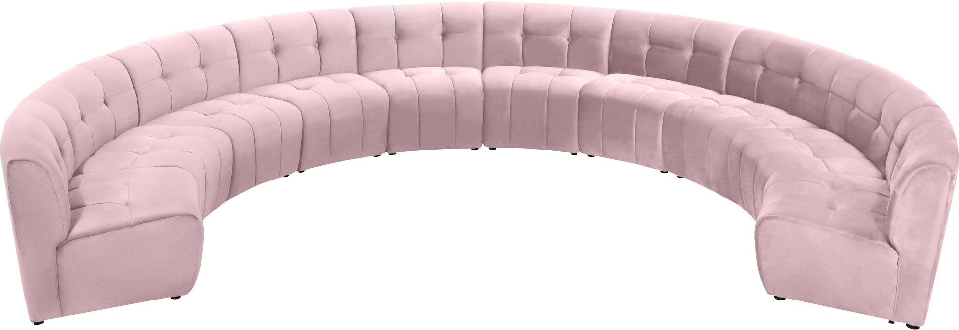 Invest in your home's comfort with this Limitless 10 Piece Sectional. This modular unit offers tons of flexibility in the number of ways that you can put each piece in the Limitless collection together to get the ideal customized look. Upholstered in pink velvet, this beautiful piece is soft and cool to the touch, so you can feel comfortable from every angle. Button and channel tufting add to this unit���s upscale look and contemporary charm.