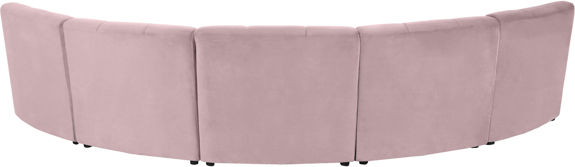 Invest in your home's comfort with this Limitless 5 Piece Sectional. This modular unit offers tons of flexibility in the number of ways that you can put each piece in the Limitless collection together to get the ideal customized look. Upholstered in pink velvet, this beautiful piece is soft and cool to the touch, so you can feel comfortable from every angle. Button and channel tufting add to this unit���s upscale look and contemporary charm.