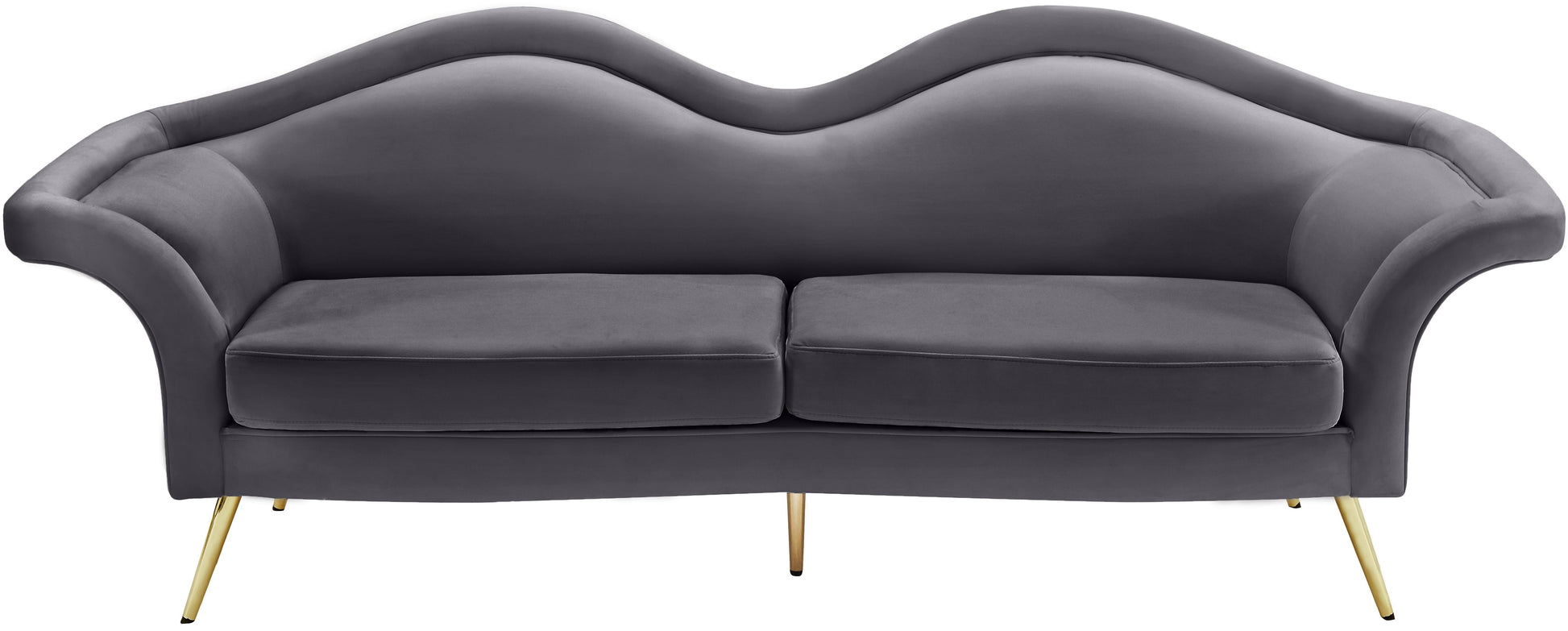 Set your sights on elegance with this Clarissa Grey Velvet Sofa. This stunning sofa features plush velvet upholstery that's soft and supple to the touch, adding a level of luxury to naptime or making for a lavish evening of TV binge-watching. This svelte sofa has a contemporary design with rolled arms and elegant slanted legs made from stainless steel with a goldtone finish. Buy it on its own, or add it to your living room or den with the available loveseat and chair.
