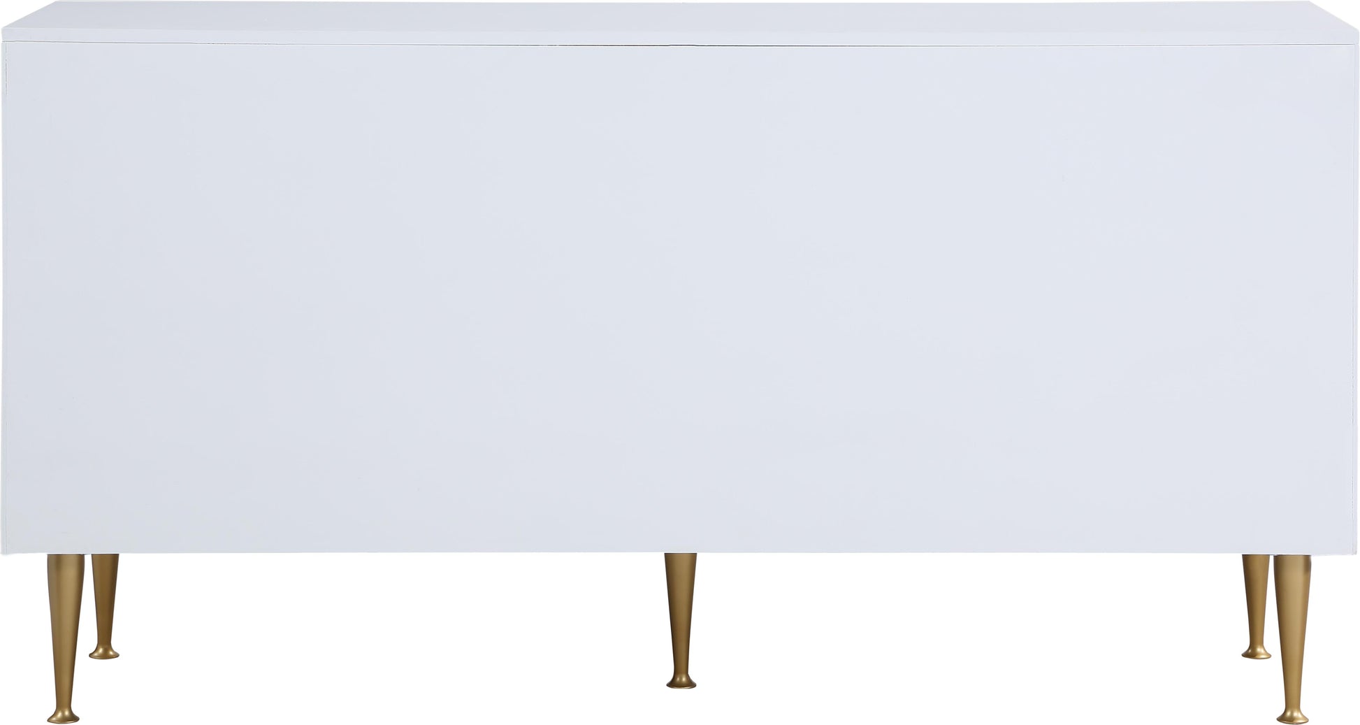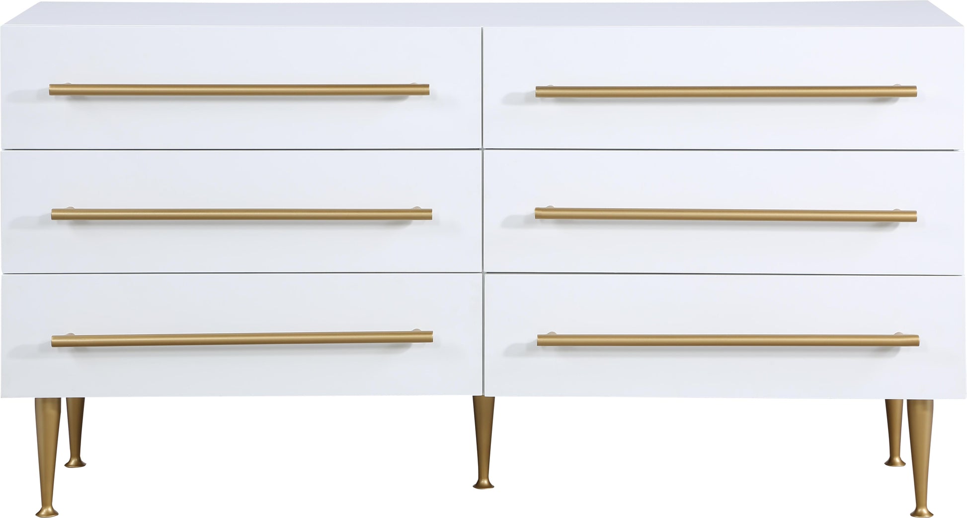 Turn to the Marisol dresser to make a big impression in your modern bedroom. This contemporary piece looks great on its own or paired with other items in the Marisol collection. Eye-catchingly elegant, this piece features a rich white finish with brushed gold metal legs and handle for an up-to-the-minute vibe in your bedroom sanctuary. Minimalist hardware adds functionality without overpowering the unit. Wood construction adds to its durable design.