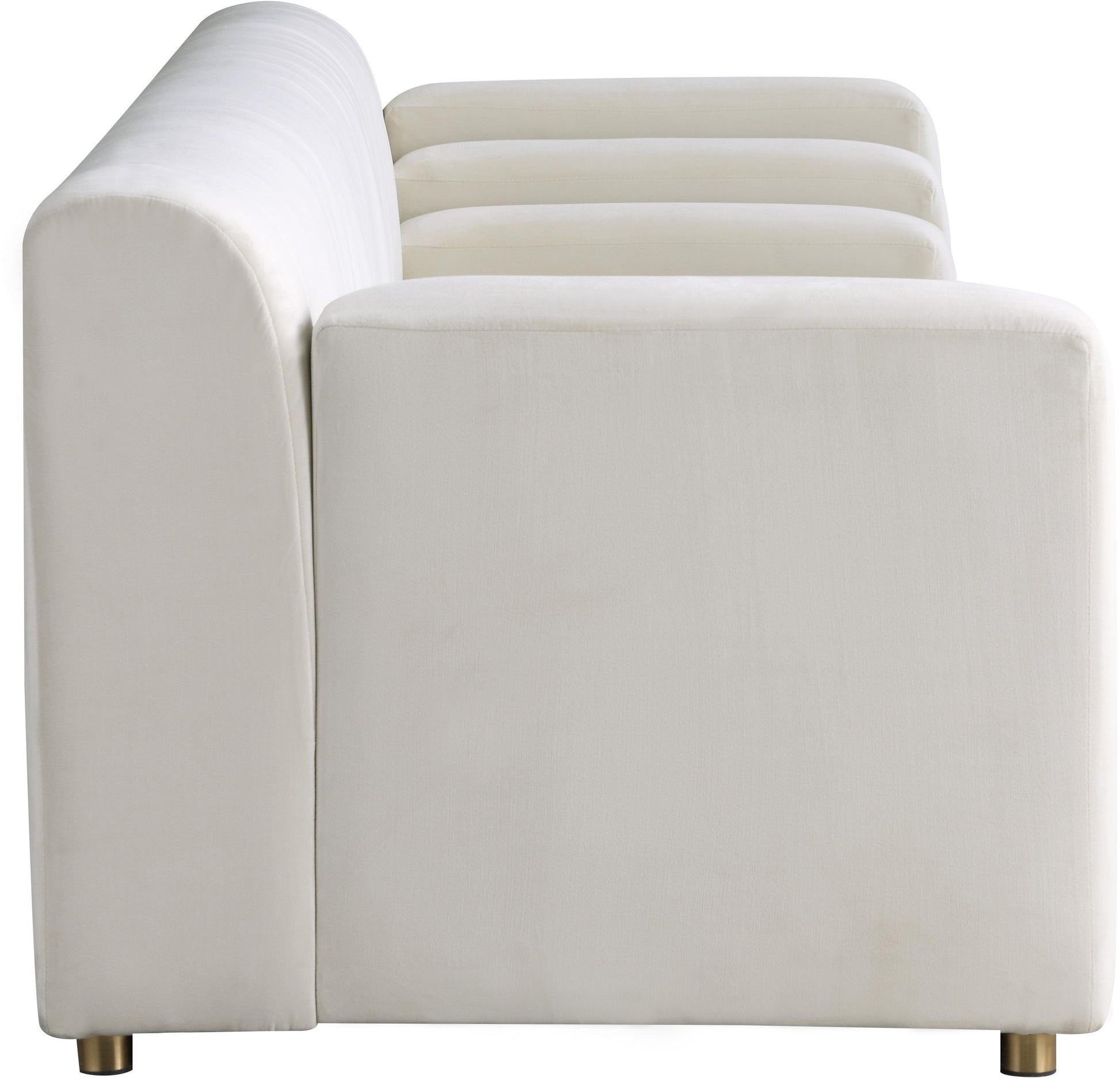 Express your bold, contemporary side with this Naya velvet sofa. This handsome piece is upholstered in cream velvet and blends seamlessly with the other units in the Naya collection, or it looks equally as beautiful on its own. Deep channel tufts run the length of the back, arms and seats of this unit, ensuring its exceptional comfort while giving it a decidedly modern vibe.
