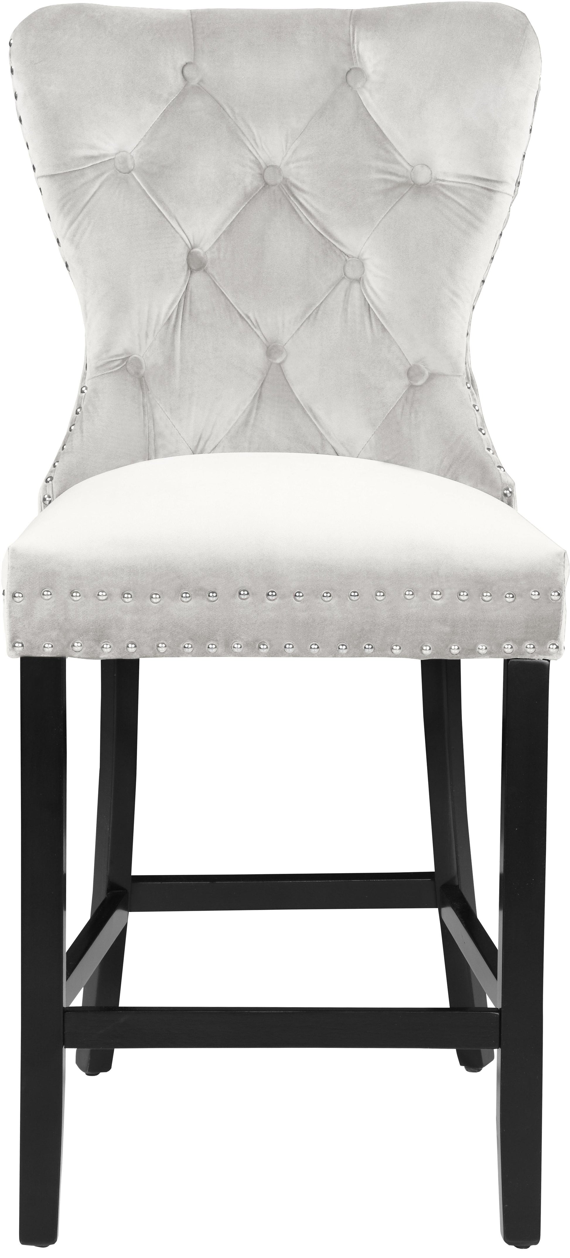 Lounge in luxurious style with the Nikki cream velvet counter stool. Featuring a curved high back, plush cushioned seat and deep tufted cream velvet upholstery studded with chrome nailheads, this counter stool is sure to take your dining experience to a whole new level. Espresso wood legs provide sturdy support and complement the stunning cream upholstery for a sleek, contemporary design.