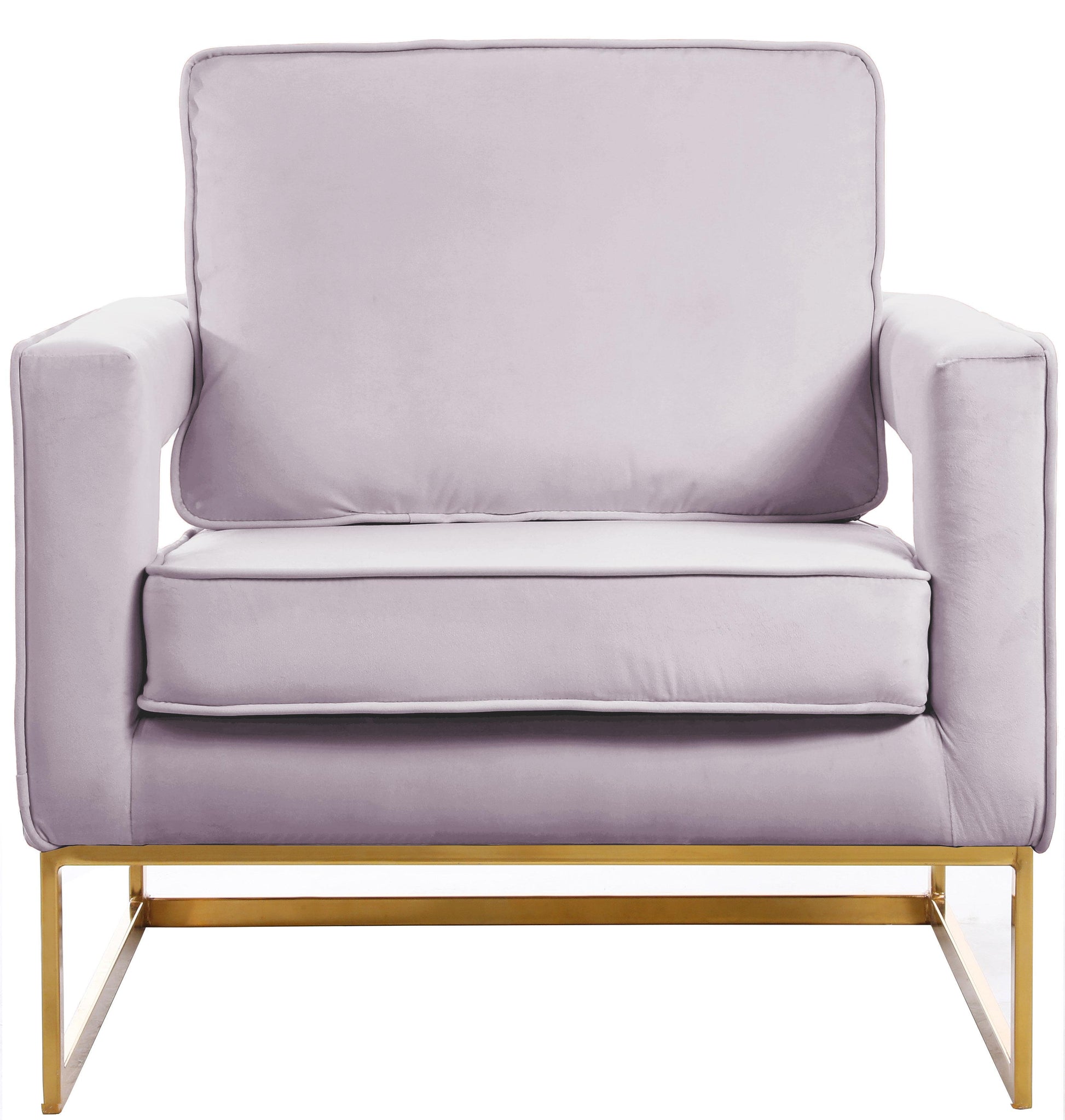 Kick back and relax in style with this eye-catching Noah pink velvet accent chair. Featuring a unique, sleek modern design, this chair's pink velvet upholstery and gold stainless steel base is both plush and durable. The chair's cushion is padded with high-density foam, ensuring absolute comfort while you sit and read or watch TV.