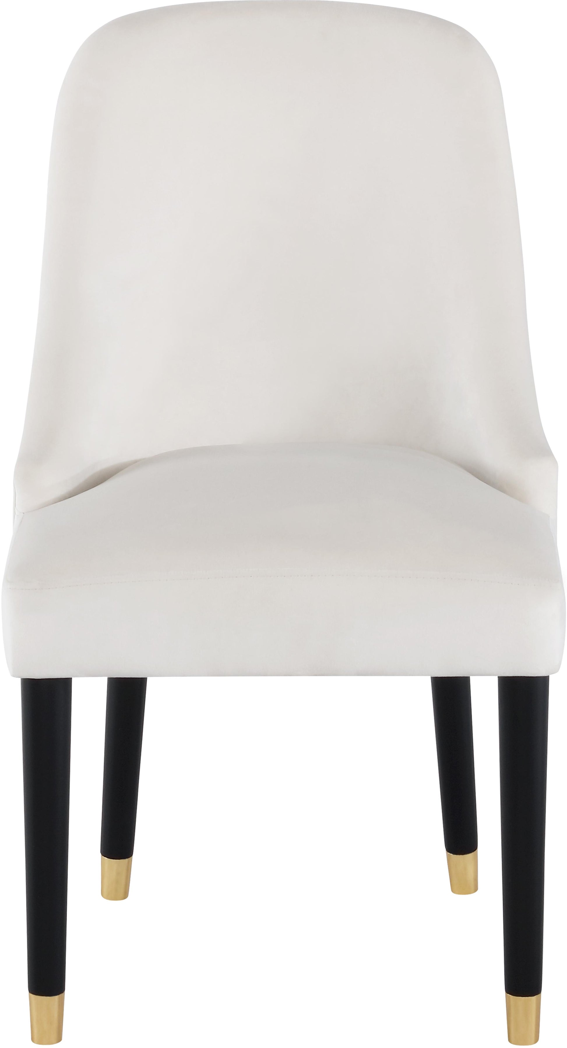 Welcoming comfort awaits you with this Omni velvet dining chair in a soft cream velvet design. Upholstered to the hilt in smooth, beckoning velvet, this chair features black wooden espresso legs topped in gold metal tips for a look that���s both elegant and sophisticated. The rounded back and the thick and plump cushions add to the comfort factor of this exceptional seating option.