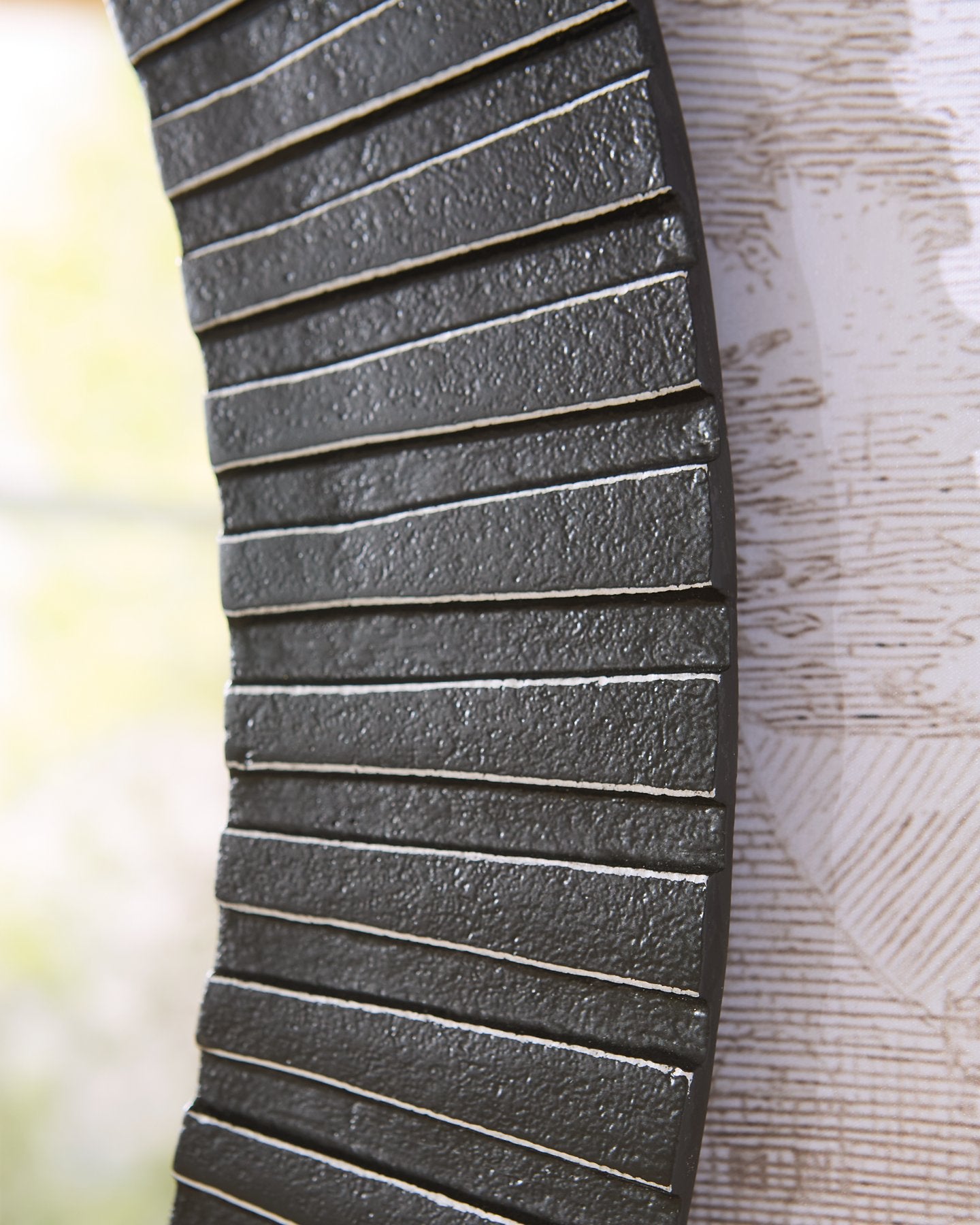 With its striking ribbed design and a contrasting black and antiqued silver finish, this accent mirror expresses modern sophistication in your space. The cast aluminum frame offers a sturdy and substantial feel, making it a lasting addition to your home. It’s simple yet elegant, reflecting both light and good taste.More About This Product