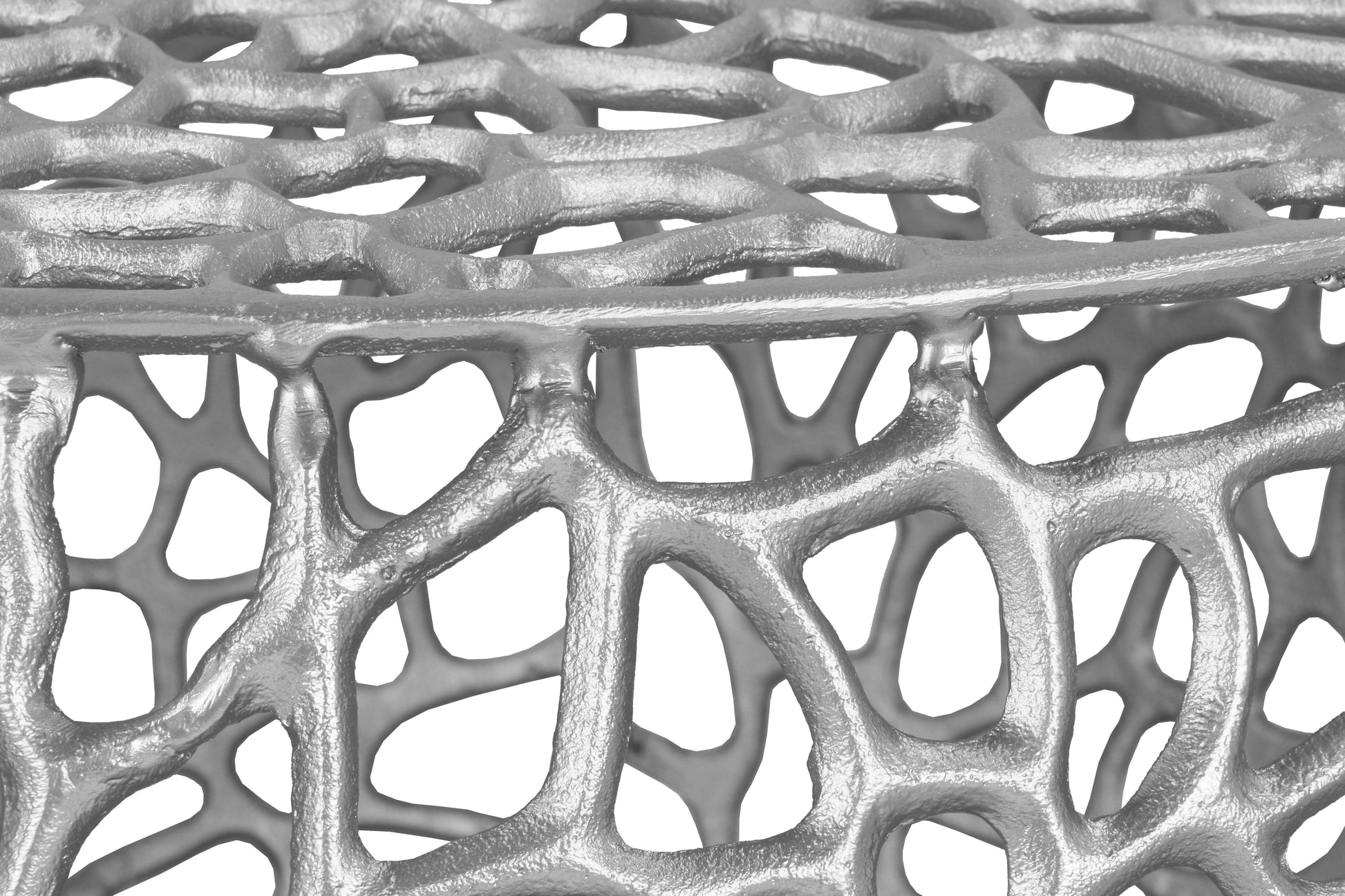 Give your space that added wow factor with this handsomely modern Priya coffee table. This contemporary table is made from solid aluminum for a lasting, durable build that holds up to years of use. The strikingly intricate detailed scrollwork and attractive silver finish gives it a sleek and modish vibe that is well at home in your living room or den. Pair it with the coordinating end table for a coordinated look in your room.