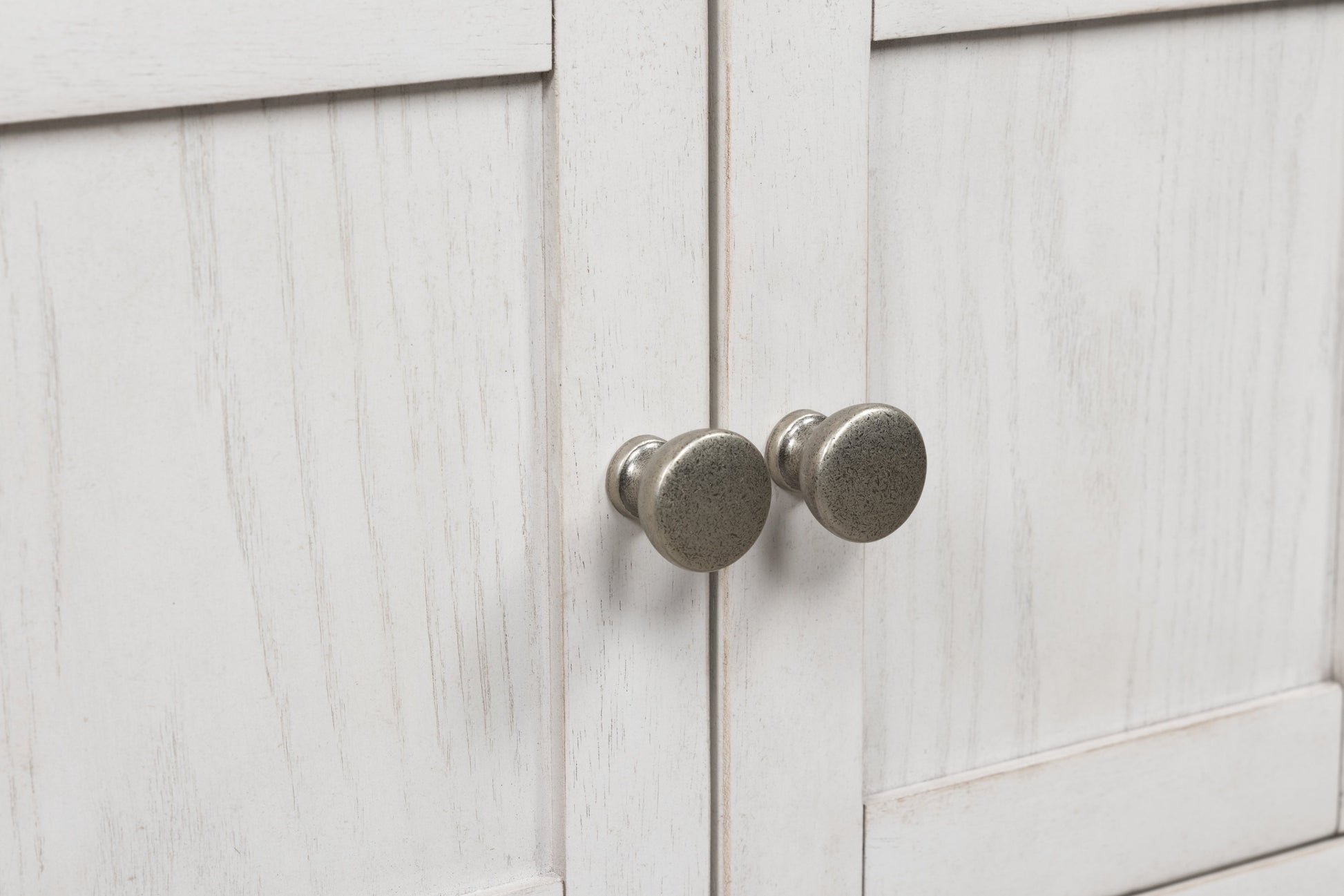 This counter height dining table brings an air of casual charm to mealtime. With its antiqued white finish, farmhouse-style dining has never been so fashionable. And this curated approach to everyday function is loaded with storage options, from cabinets to drawers to wine shelves. All that’s missing is you and your family.More About This Product