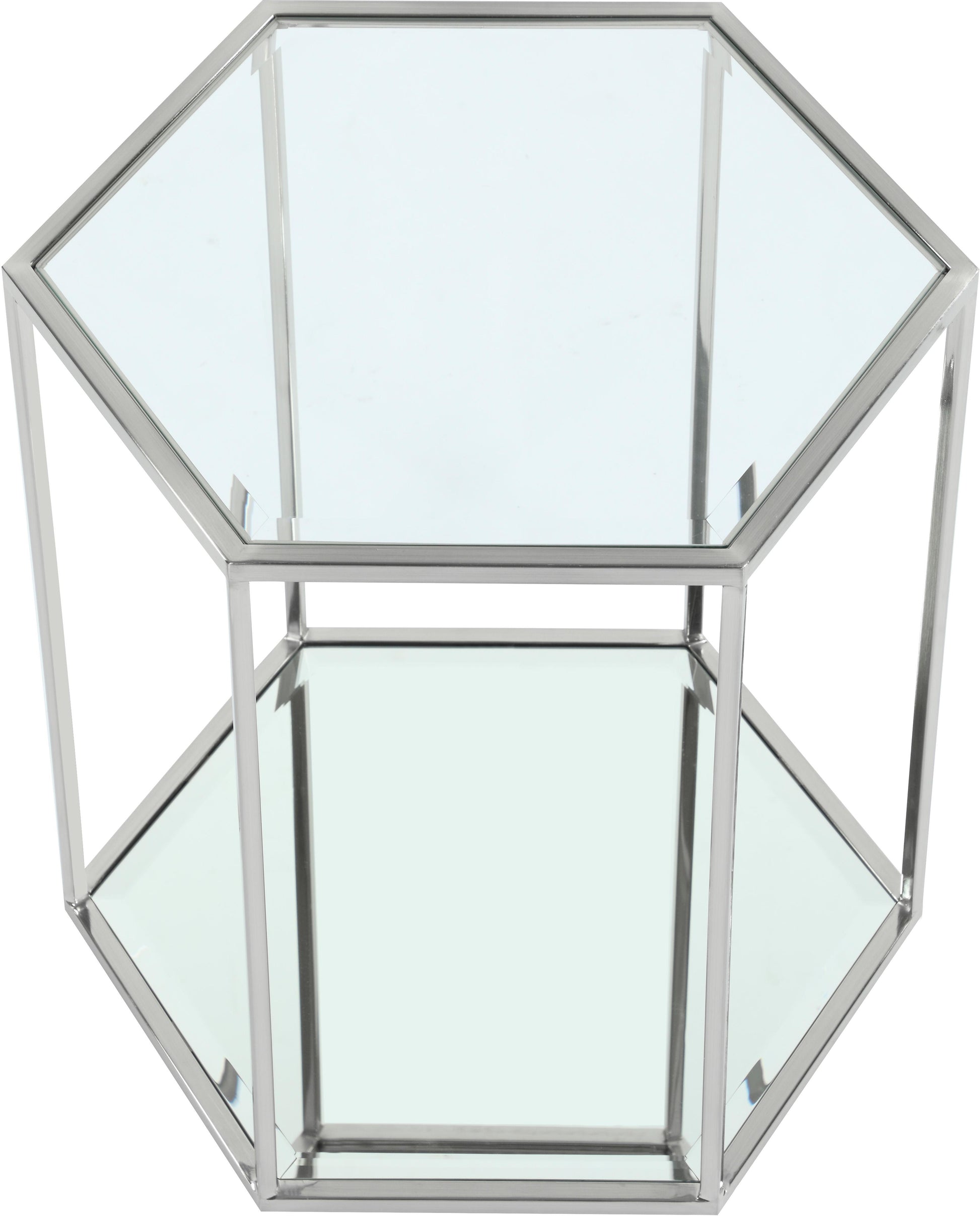 This SEI end table puts you in complete control of the look of your space. Use a single table for a small space, or put together two or more tables for an expanded look when game night requires extra room for you to spread out. The beautiful chrome frame holds a glass top with mirrored base and parallel mirrored bottom shelf. The modular design lets you connect as many tables as you need for a custom solution to your requirements.