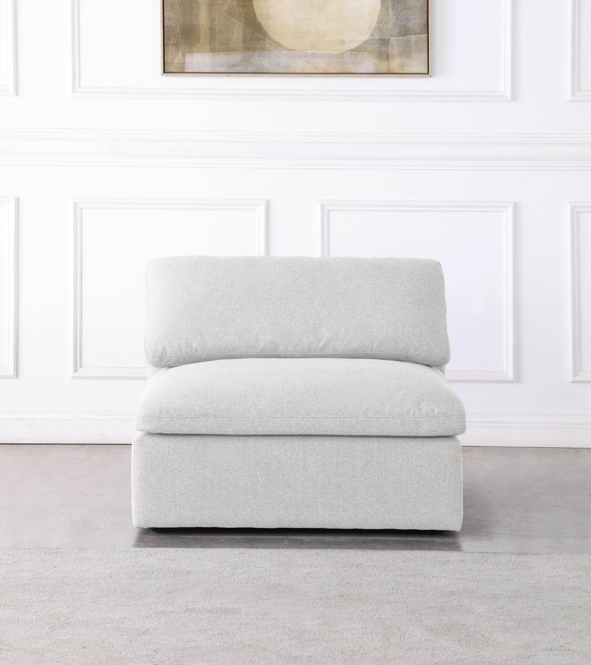 Serene Cream Linen Fabric Deluxe Cloud Armless Chair