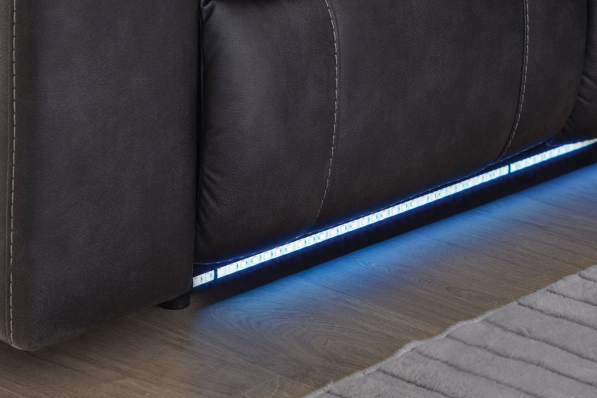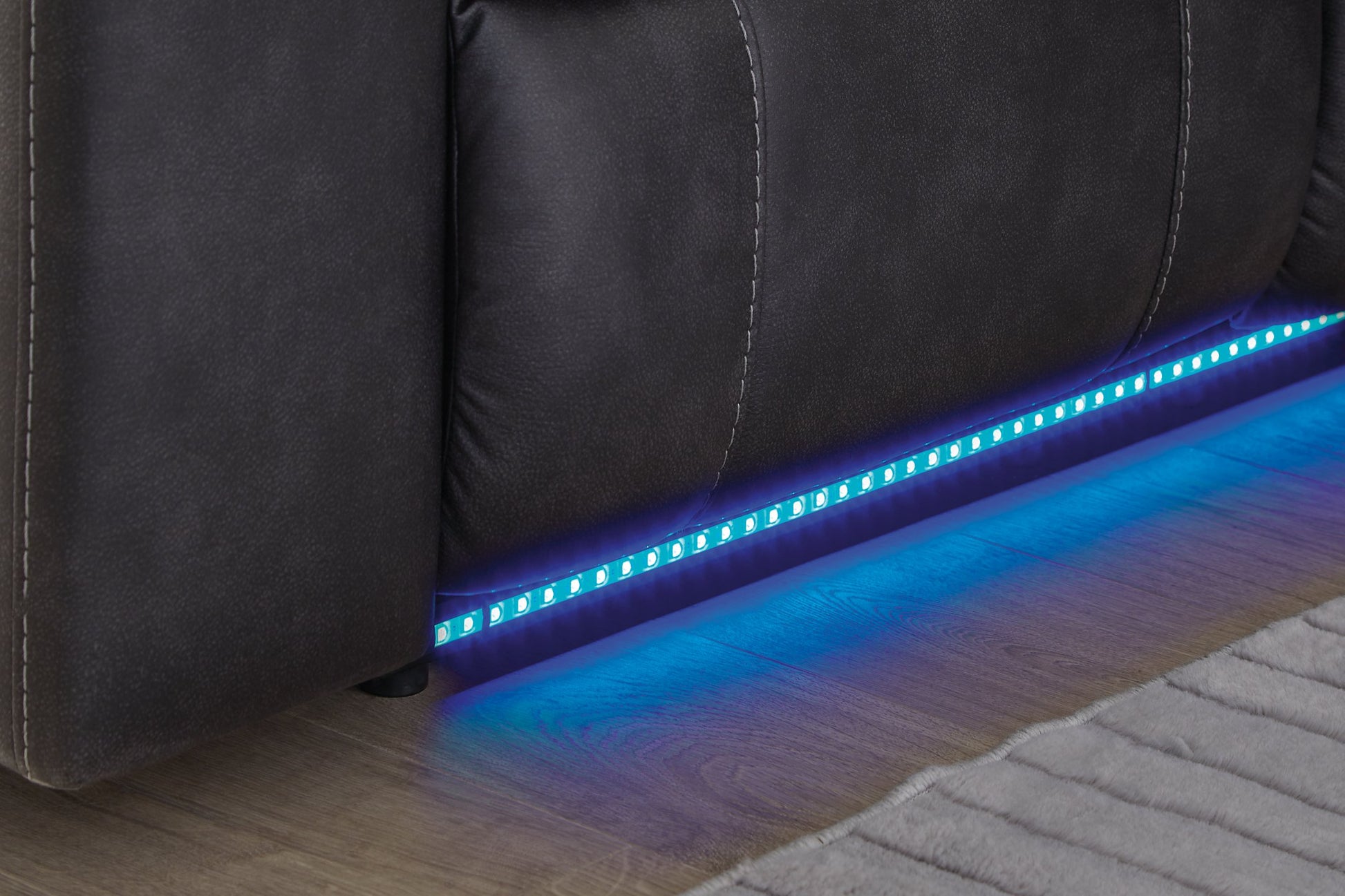 This reclining sectional pairs the luxe look of faux leather with must-have functional features. LED lights on the underside put a modern twist on the simply chic design—choose from three colors to add ambiance to movie night or gaming with friends. And you can keep remotes, drinks and other entertainment essentials close with the handy console. Ready to relax? Easy pull tab reclining has you stretched out in no time.More About This Product