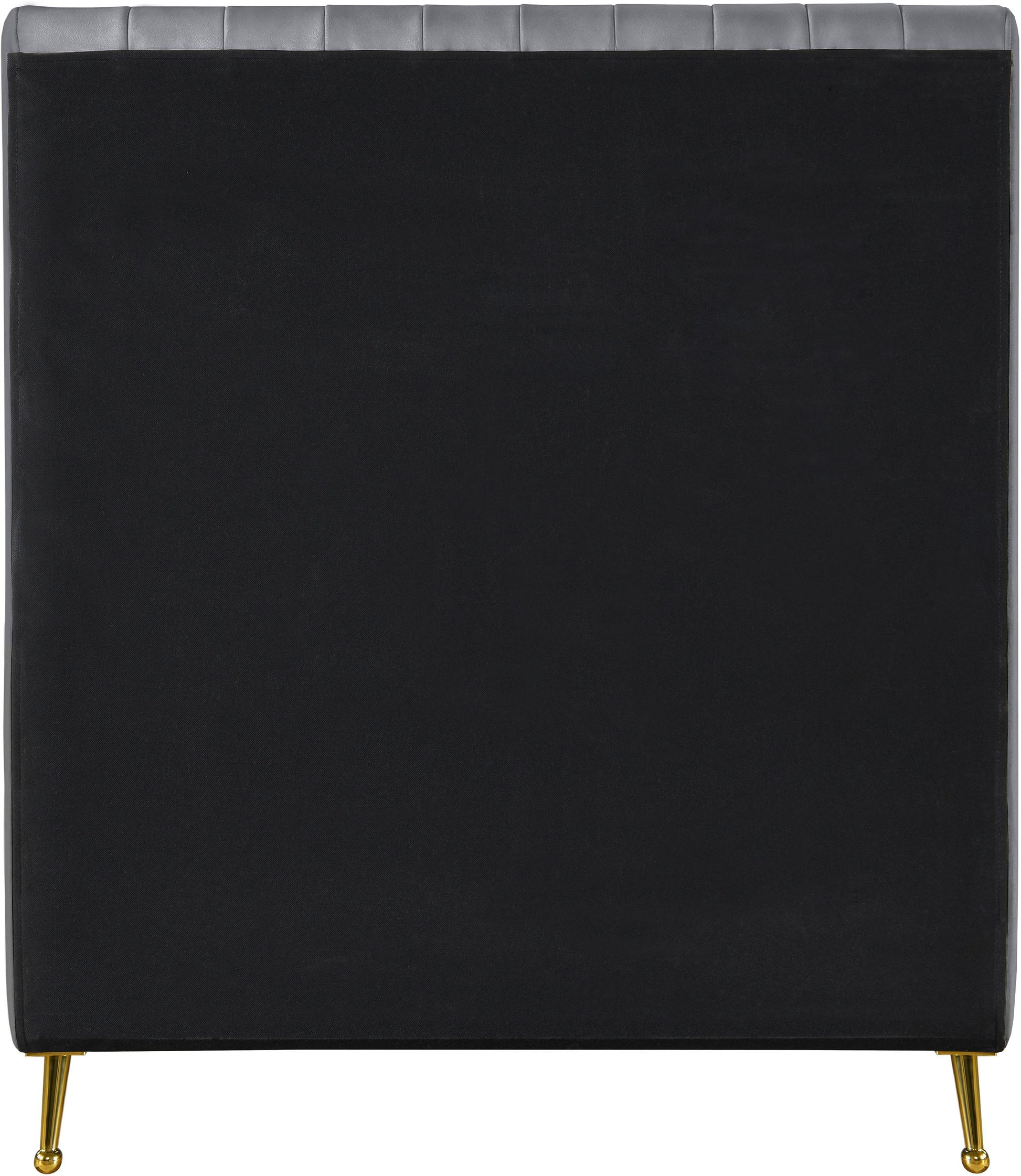Slip into the lap of luxury with this Zara Velvet Bed. This beautiful twin bed is padded to the max on its headboard and footboard for a look that is nothing short of upscale. The luxe design is amplified by the bed's rich grey velvet upholstery and its deep detailed channel tufting, which also serves to keep the interior padding aloft, full, and comfortable while you relax or unwind in bed. The bed has gold legs for a regal touch, and it comes with slats, so it doesn't require a box spring.