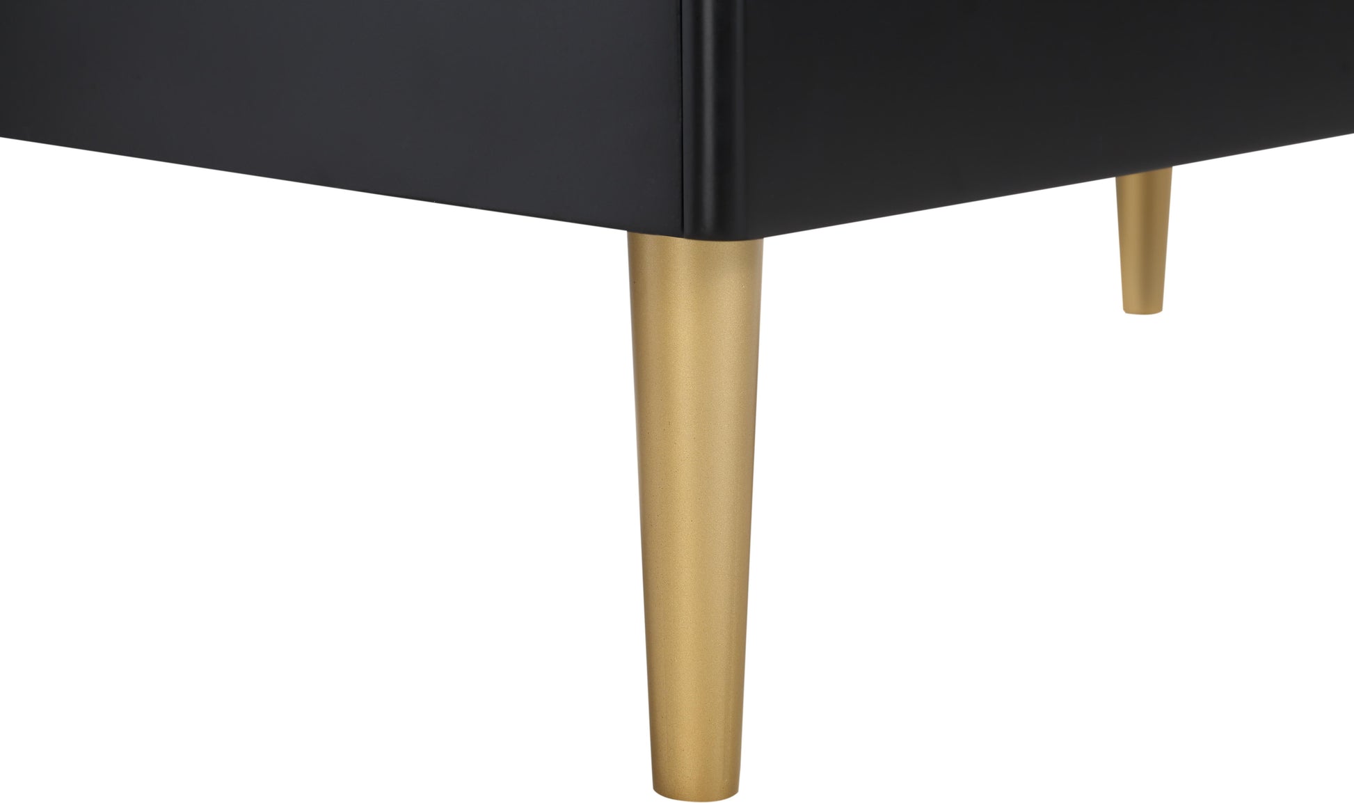 Watch your d?�cor cascade to new heights when you bring home this Zayne chest. It features a rich black finish that sets an instant contemporary vibe in your space. Its brushed gold metal legs and handle add a sophisticated slant to the piece���s design, ensuring it���s a simple and easy fit with other modern pieces. Pair this unit with other items in the Zayne collection for a seamless presentation in your room.
