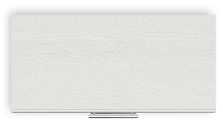 - Matte white finish with subtle replicated wood grain